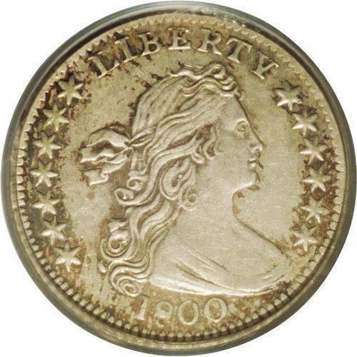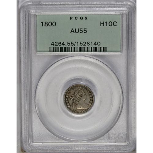 <B>1800<H10C> LIBEKTY AU55 PCGS.</B></I> V-2, LM-3, R.4. An intricately struck pearl-gray and golden-brown representative. Clean surfaces confirm the undeniable eye appeal. From early dies without any indication of die damage near the eagle's beak. The reverse design is broadly strike doubled, likely due to a loose reverse die. Certified in a green label holder.