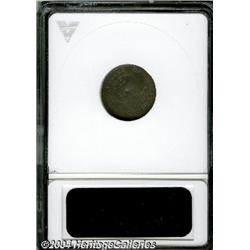 <B>1800<H10C> LIBEKTY--Damaged, Bent--ANACS. VF Details, Net VG10.</B></I> LM-3, V-2, R-4. Lavender and golden-brown colors alternate across this richly detailed Draped Bust Half Dime. Two digs on Liberty's neck and a dig on the eagle's neck cause the center of the coin to be wavy. Pinscratches are on the cheekbone and the upper shield. <BR><BR><B>Important notice:</B> Heritage usually auctions material at the rate of 200-250 lots per hour. On some occasions eBay Live bid software or the Internet may not be able to keep up with the pace of the auction. We recommend placing a realistic absentee bid now as insurance to avoid disappointment. Occasionally the auctioneer may eliminate or reject an eBay Live bid, and the auctioneer may also reopen a lot after the close of the eBay live bidding (usually because we missed an audience bid), and may reject your bid even if it shows you as the winning bidder. By bidding via eBay Live, you agree that Heritage may award the lot to another bidder at its sole discretion under the circumstances described above or any other reasonable circumstances. Since eBay bids are not shown to us until we open the lot on the floor, we treat those bids just like floor bids. In most cases the floor responds before the eBay bid is presented to us, due to Internet lag time, so for consistency we have made it a policy that floor bids are always considered first over tie eBay live bids. Also please note that all Heritage lots purchased through eBay Live carry a 20% Buyer's Premium. Please make sure you read the Terms and Conditions before you bid.