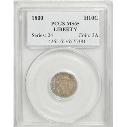 <B>1800 H10C LIBEKTY MS65 PCGS.</B></I> V-2, LM-3, R.4. An astounding example of the popular LIBEKTY variety in an early die state. Of the four known die marriages of 1800 half dimes, only two are deemed reasonably collectible. LM-2 is considered by specialists to be an R.7 variety, with less than 12 known examples extant. The fourth variety, LM-4, was discovered by Ed Price and first reported in 1994. Only three examples are known today. LM-1 is, by a substantial margin, the most commonly encountered variety of this date and LM-3 (this piece) is considered to be very scarce. A cursory examination of the PCGS <I>Population Report</B></I> as of (11/07) confirms this fact, with only 35 out of 233 1800 half dimes graded being of the LIBEKTY variety.<BR> The origin of this variety is attributable to a defective R punch. Similar problems are found on other early Federal coinage--the 1796 LIHERTY cent and the 1796 LIKERTY half dime, to name two popular examples. Such anomalies serve as tangible reminders of the technical challenges and material limitations of our first U.S. Mint. The simplest of tools, like an R letter punch, were rare commodities, and minor impairments were tolerable. Tools were employed until they were unusable, and this is why we find some early Federal coins that were struck from completely shattered dies. As such, the sacrifices in quality of the final product were not made due to a lack of pride in workmanship, but quite simply out of necessity.<BR> In terms of condition and eye appeal, the current coin resides in the upper echelon of not only the variety, but also the entire, short-lived Draped Bust, Heraldic Eagle half dime series. PCGS has graded only one 1800 LM-3 in MS65 with one finer, a recently certified MS66 piece (11/07). The current coin is of extraordinary quality. Attractive toning atop rich, lustrous surfaces unites with an exceptionally strong strike to define this Gem specimen. The reverse die is rotated approximately 30 degrees counterclockwise, which is typical for the variety. A small, shallow depression under the Y in LIBEKTY serves as a pedigree marker for future researchers. For the sake of clarity, this is not damage by any means, but rather the result of this coin being struck with a piece of foreign debris between the obverse die and the blank planchet. Such incidents were common to early Federal coinage and, in this case, only adds character to this already breathtaking example of an 1800 LIBEKTY half dime. Spirited bidding is sure to ensue. <BR><I>Ex: Michael Riordan Collection (Goldberg, 6/2002), lot 2034; Oliver Jung Collection (American Numismatic Rarities, 7/2004), lot 27.<BR>From The Madison Collection.</B></I><BR><BR><B>Coin Engraver:</B> Robert Scot<BR><BR><b>Shipping:</b> Coins & Currency (<a target="_blank" href="http://www.heritageauctions.com/common/shipping.php">view shipping information</a>)