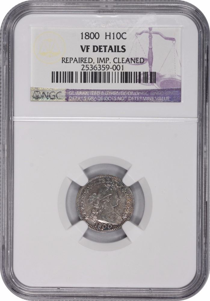 Not quite so bad as the lead-in suggests, this early half dime was cleaned at some point in the past but still retains a modicum of eye appeal. Now naturally retoning in shades of blue and gold. Take a look at this one before you pass judgement.