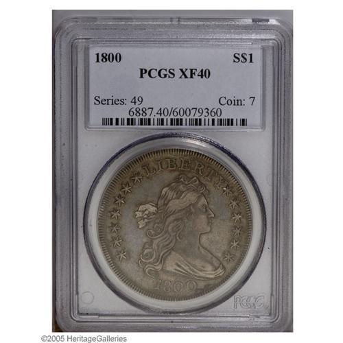 1800 S$1 XF40 PCGS. B-12, BB-184, R.3. The R in LIBERT 1800[S$1] XF40 PCGS.