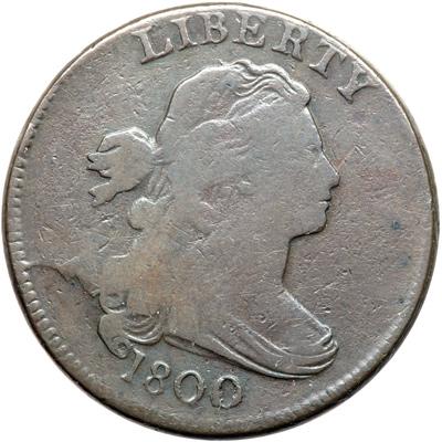 1800 S-202 R4+. VG-10. Glossy light olive and chocolate brown. Only microscopic marks of no significance. The obverse is slightly weaker than the reverse due to the heavily broken obverse die, as always on this variety (this was the last of five marriages for the obverse die). EDS, Breen state I. The date and legends are all bold. An attractive, well balanced example for the grade.