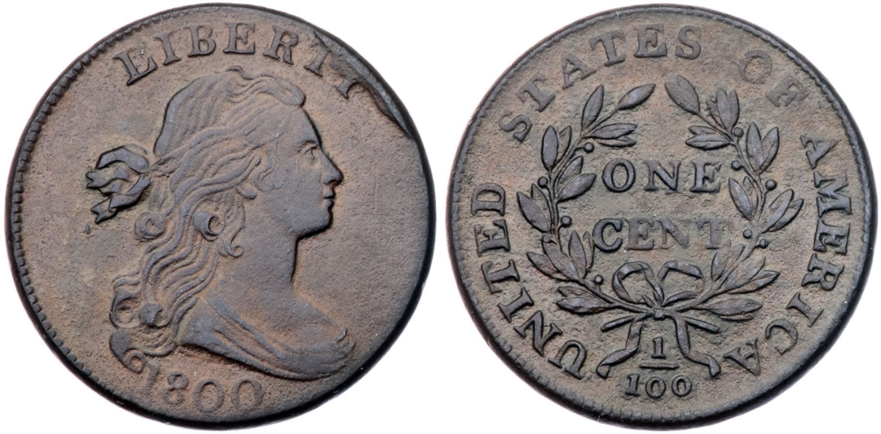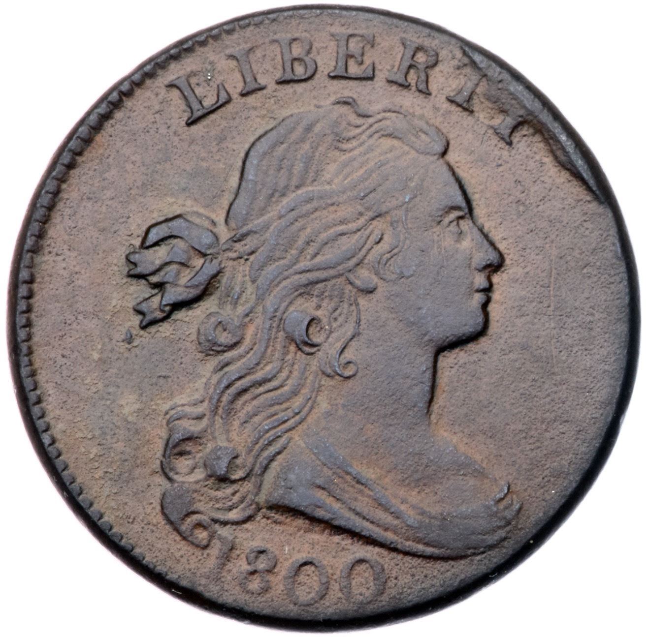 1800 S-208 R3 F15Sharpness EF40 or better with just a bit of wear on the highpoints, but covered with moderate roughness under slightly glossy dark steel and chocolate with lighter brown in protected areas. The only marks are two light scratches lost in the patina before the face. Shallow verdigris is present in protected areas on the reverse. A sharp cent that is difficult to grade, but the eye appeal is rather decent, especially on the obverse. LDS, Breen state IV, with a strong cud break at TY. Graded EF40 net VF20 and tied for CC#10 in the Bland census. Noyes says VF20 net VG8, his photo #25803. Comes with an impressive provenance.Certificate Number: Pedigree: Ex F. C. C. Boyd 1957-New Netherlands Coin Co. (privately)-Dorothy I. Paschal-Herb Silberman 5/1983-Fred H. Borcherdt Collection