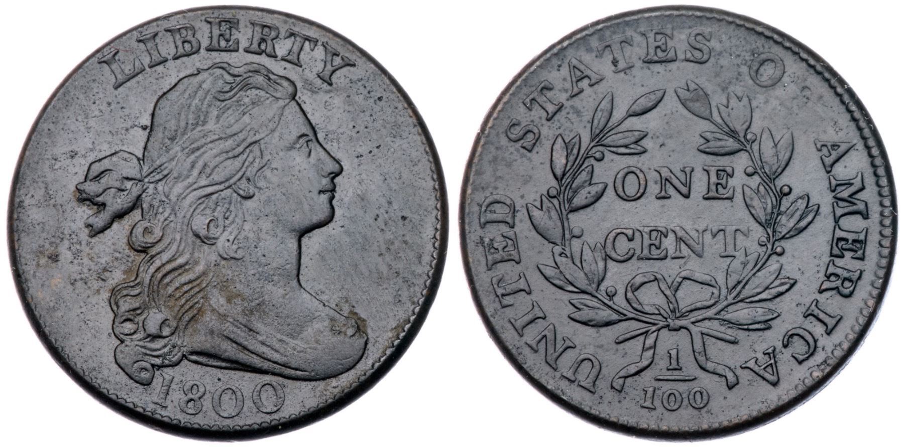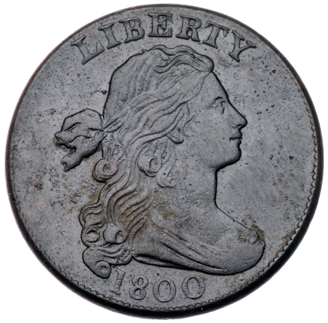 1800 S-209 R3 VF25Sharpness EF45 with traces of hard verdigris on the obverse, mostly in the field below the ribbon. The reverse is smooth and satiny with very nice eye appeal, but there are a few microscopic of verdigris visible under magnification. Mostly glossy dark chocolate and olive brown. Rare VEDS, Breen state I, before any die clashmarks on the obverse. Graded EF45 net VF25 and tied for CC#12 in the Noyes census, his photo #62606.Certificate Number: Pedigree: From the Fred H. Borcherdt Collection