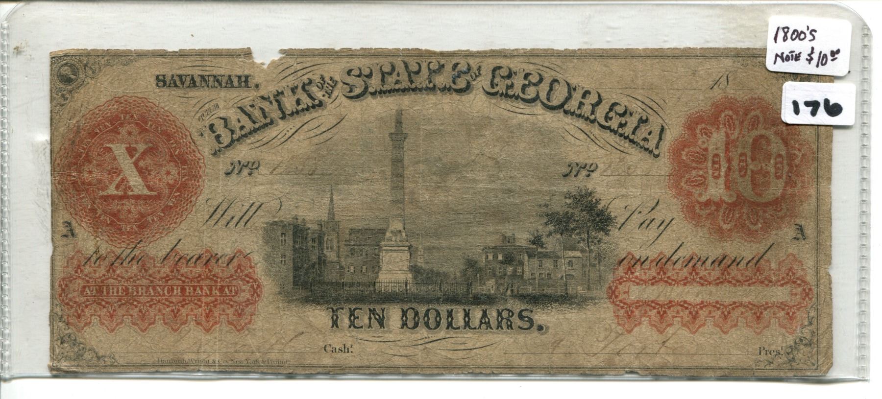 1800'S BANK OF THE STATE OF GEORGIA TEN DOLLAR NOTE