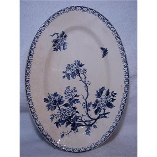 I BELIEVE THIS IS A BEAUTIFUL FLOW BLUE PLATTER MADE BY "AUBEPINE" AND "OPAQUE DE GIEN" AND A # A500. I DO NOT KNOW THE AGE OF IT YET, BUT IT WAS PURCHASED BY MY LATE GRANDMOTHER IN FRANCE IN THE 1950'S. I WOULD SAY IT WAS MADE IN THE EARLY 1900'S OR LATE 1800'S. I WISH SOMEONE OUT THERE WOULD TELL ME WHO "AUBEPINE" IS PLEASE . The Platter is in excellent condition for its age. It does not have any chips,cracks or dents on it that I can find. It does have a large amout of crazing on it. You can see most of this in my pictures. If you have any questions ,please feel free to ask. I HAVE OVER 800 POSITIVE FEEDBACKS FOR MY EBAY STORE. Thanks for looking!!!