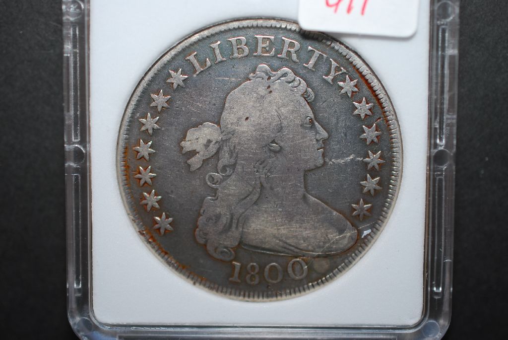 1800 US Drapped Bust $1; MCPCG Graded F12 Details-Improperly Cleaned; EST. $1600-2000