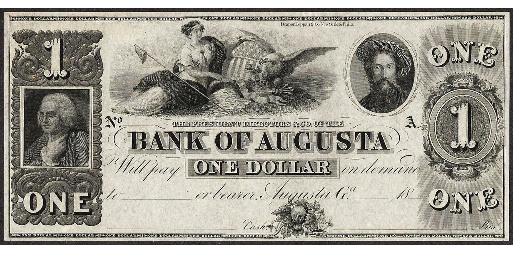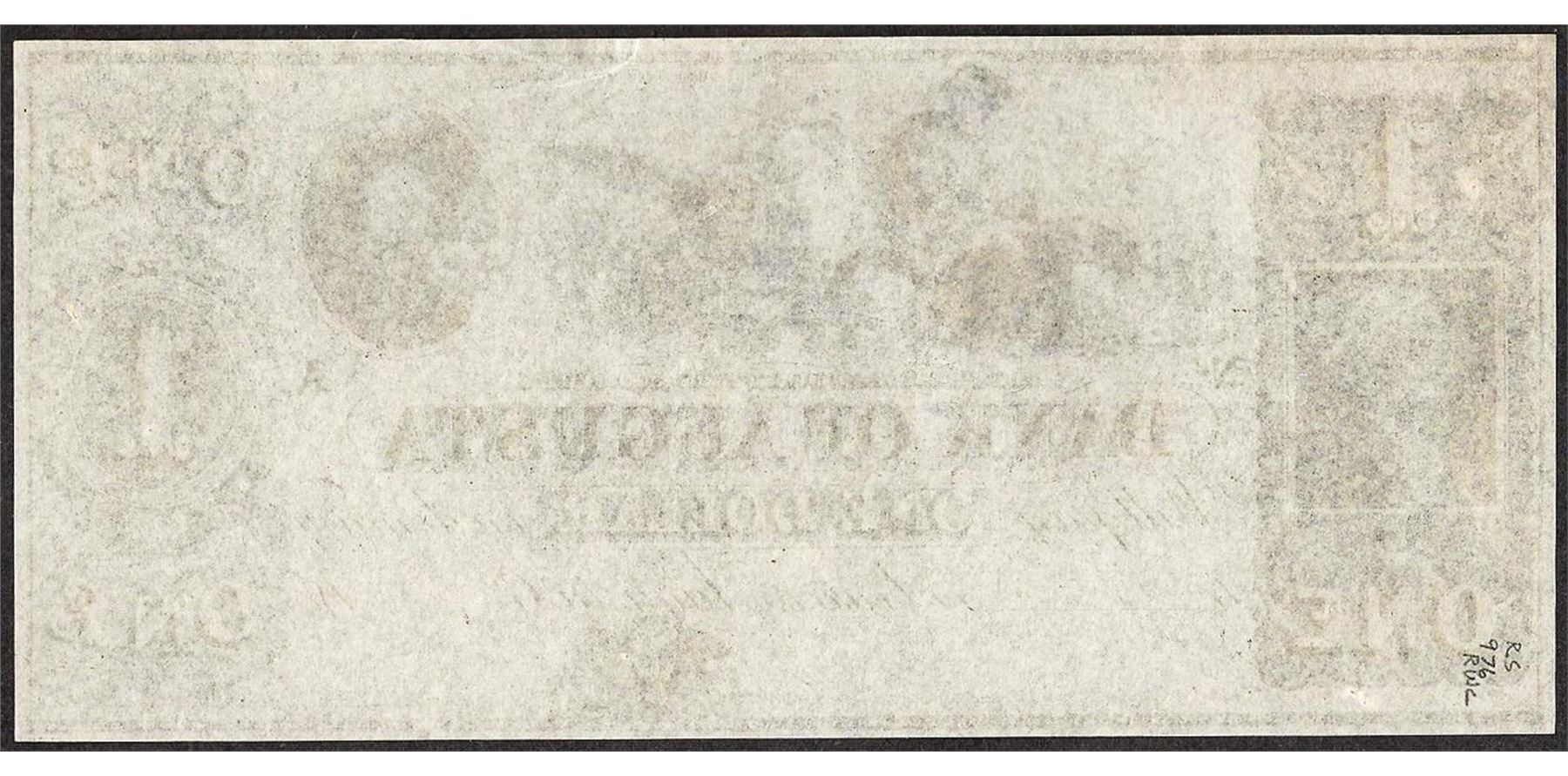 One 1800's $1 Bank of Augusta Georgia Obsolete Note.