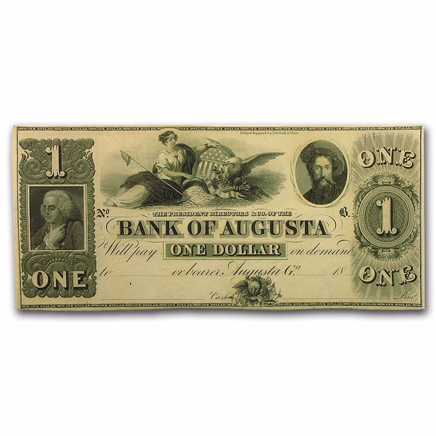 One 1800's $1 Bank of Augusta Obsolete Bank Note.