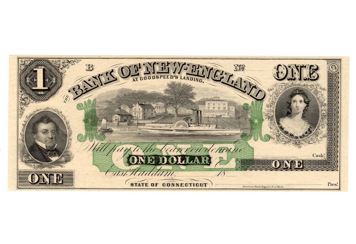One 1800's $1 Bank of New England Godspeed's Landing Note.