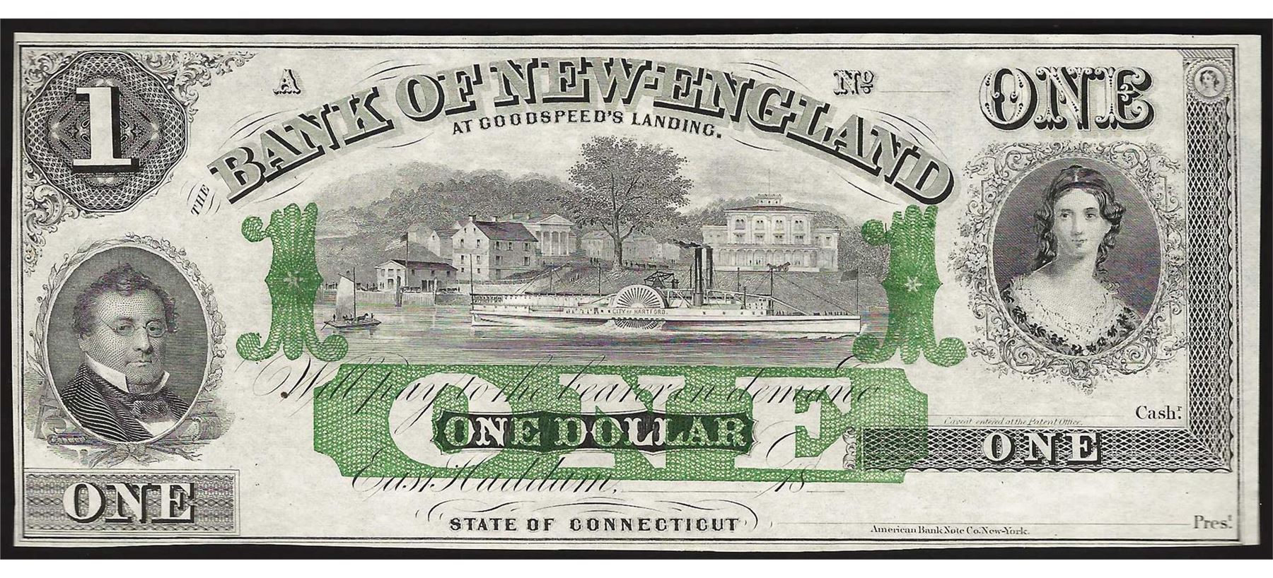 One 1800's $1 Bank of New England Obsolete Bank Note.