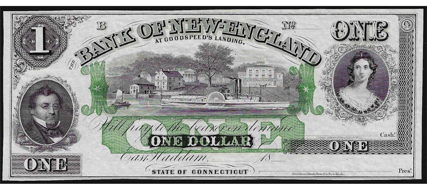 One 1800's $1 Bank of New England Obsolete Bank Note.