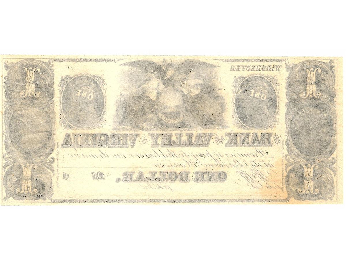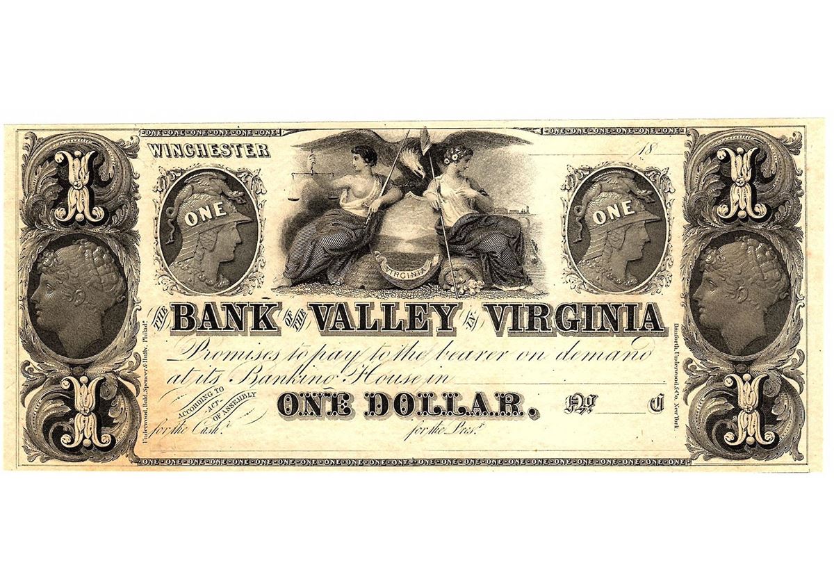 1800's $1 Bank of the Valley in Virginia Obsolete Currency Note