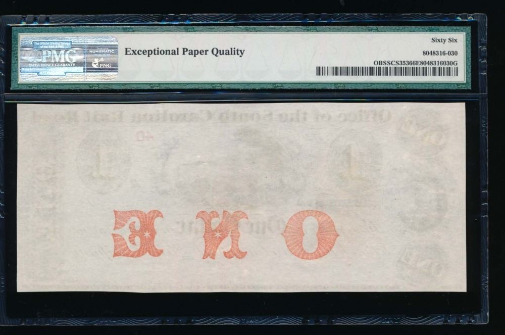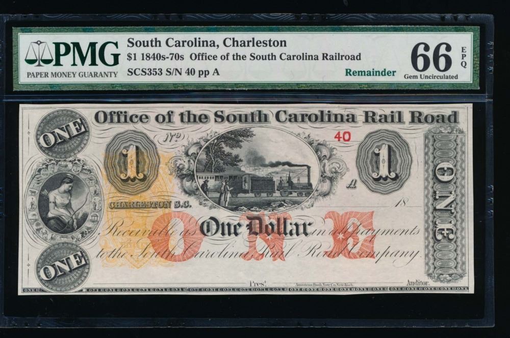 One 1800's $1 Charleston Rail Road Note PMG 66EPQ.