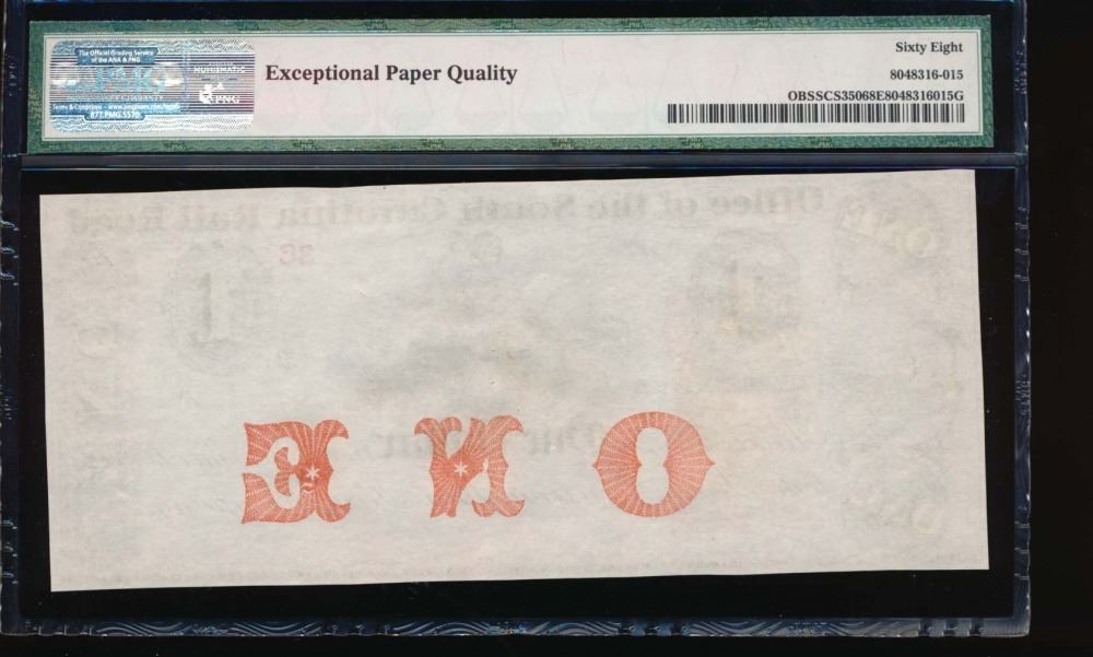 One 1800's $1 Charleston Rail Road Note PMG 68EPQ.