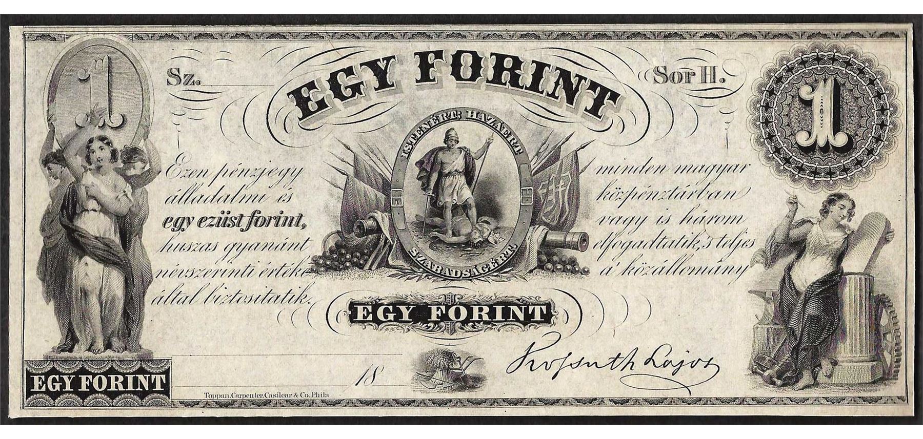 One 1800's $1 Egy Forint Obsolete Note.