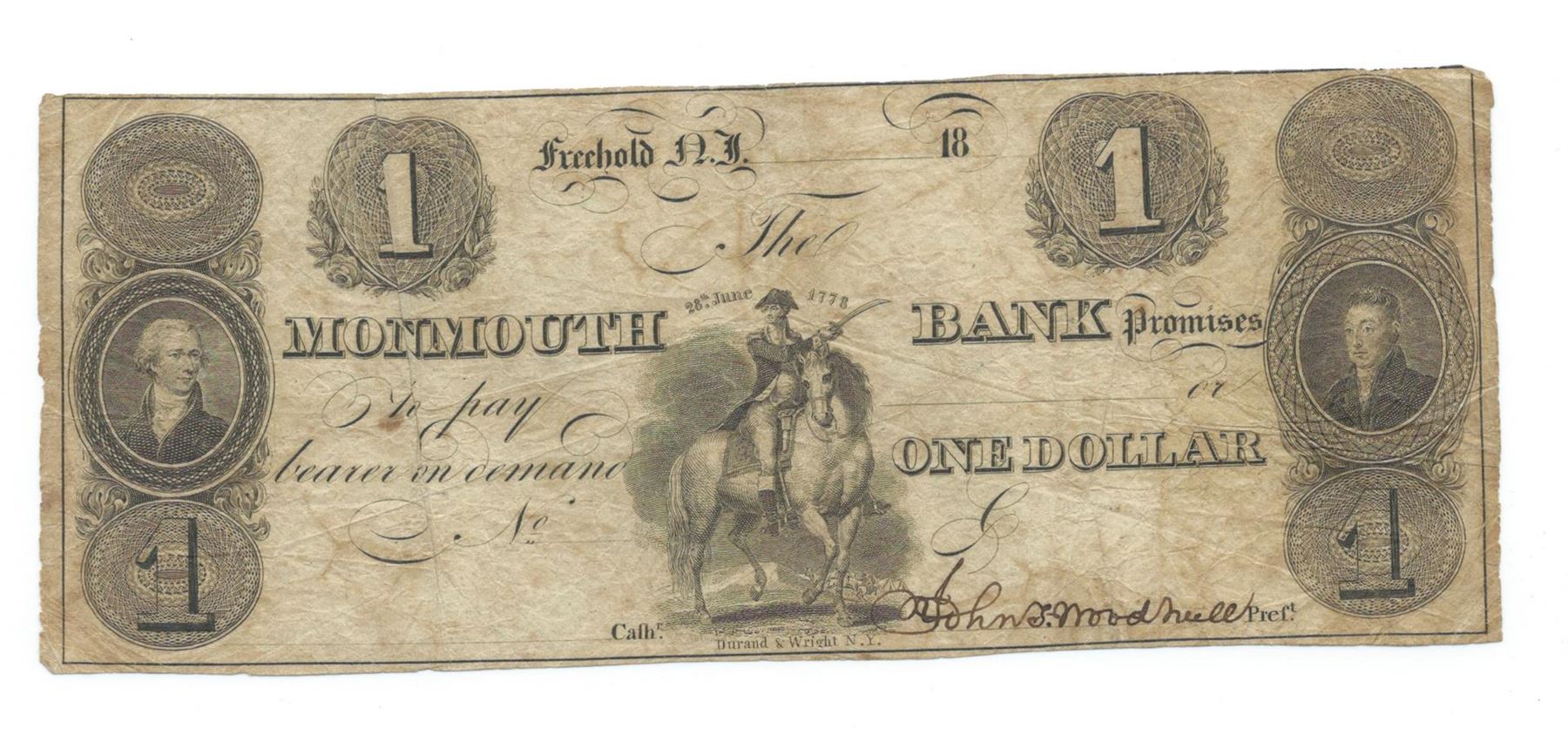 1800's $1 Monmouth Bank, Freehold NJ Obsolete Bank Note