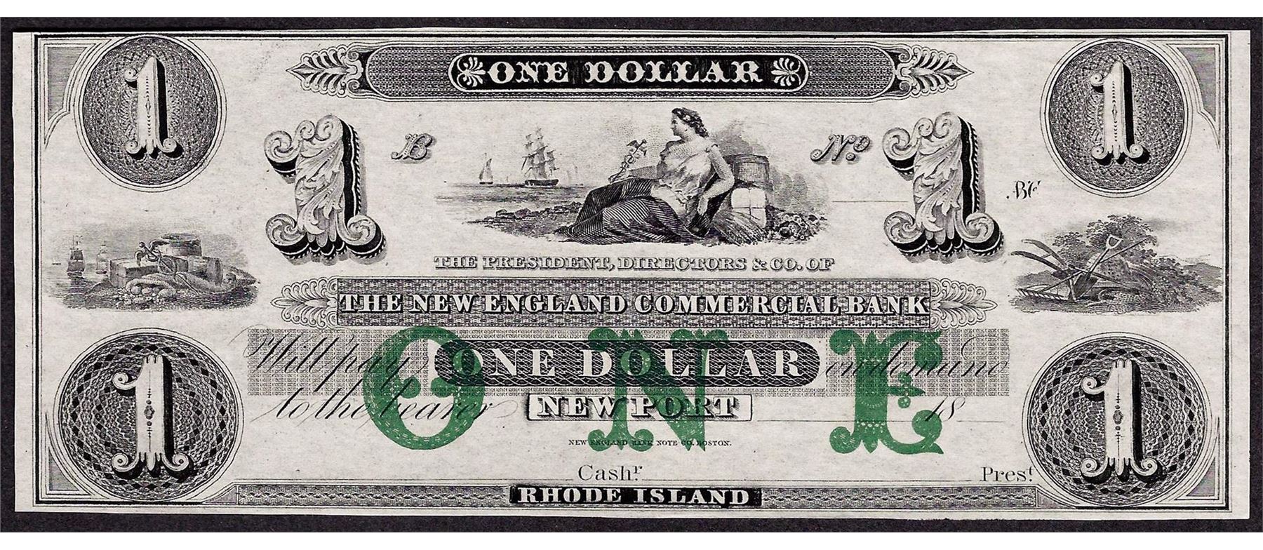 One 1800's $1 New England Commercial Bank Obsolete Note.