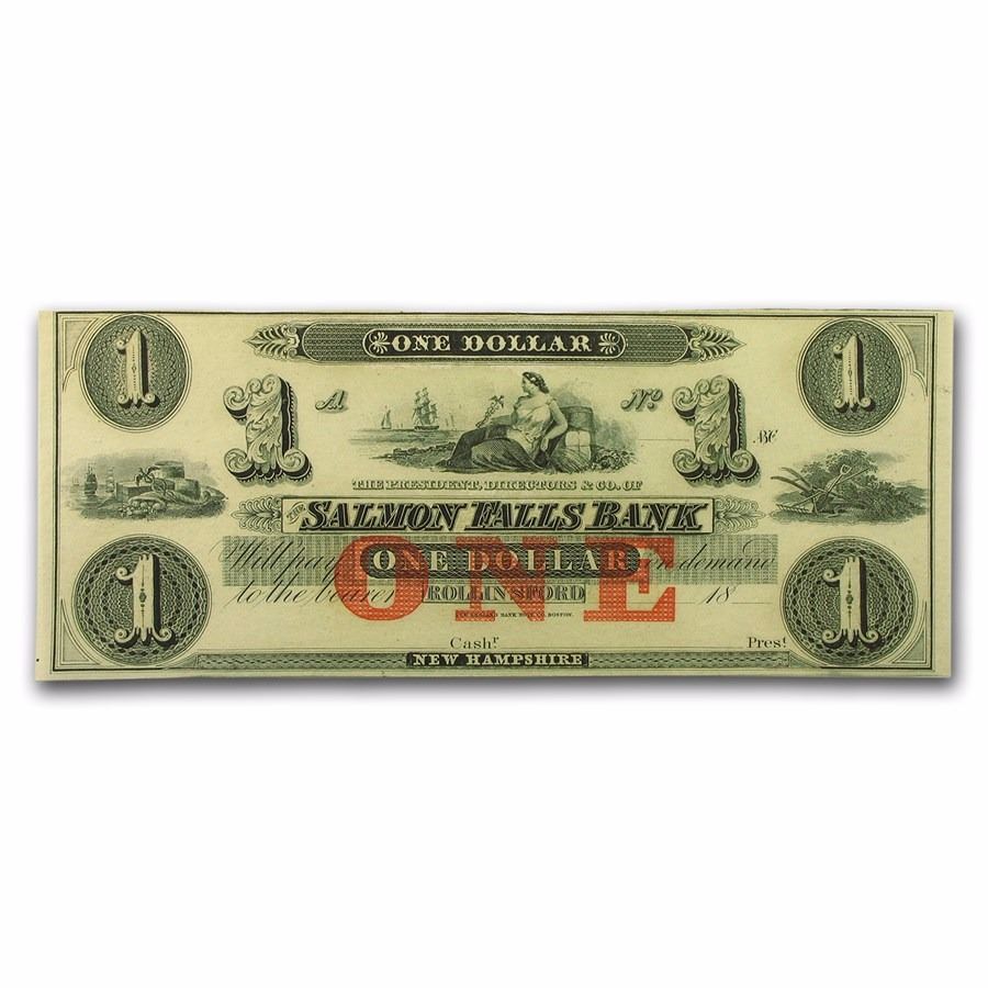 One 1800's $1 Salmon Falls Bank of Rollinsford Obsolete Bank Note.