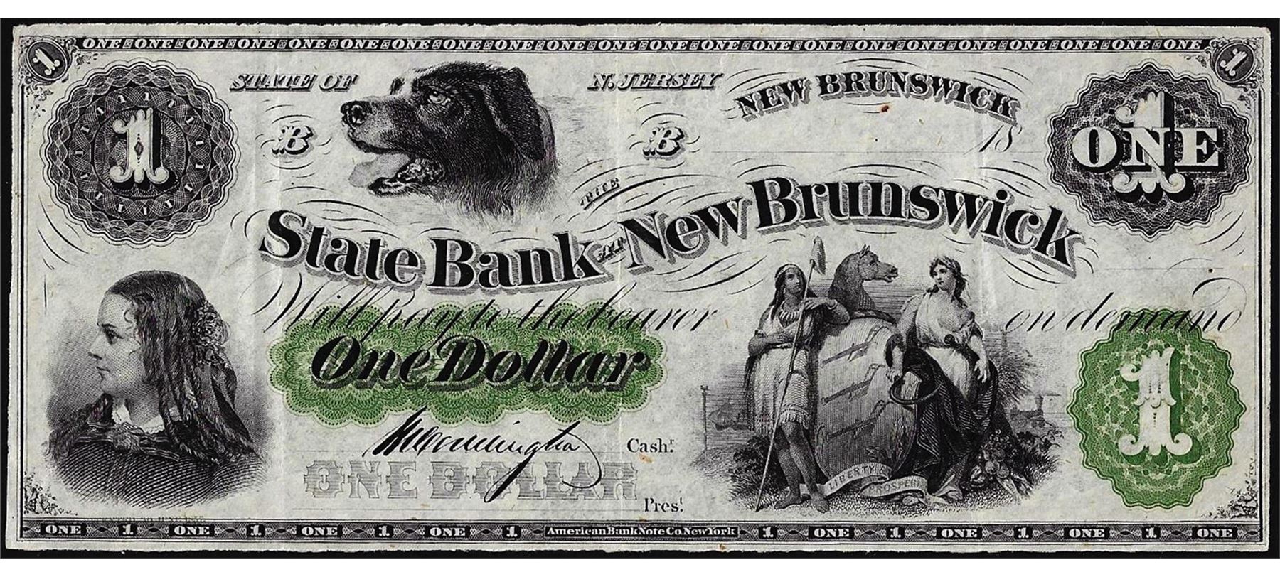 One 1800's $1 State of New Brunswick Obsolete Bank Note.