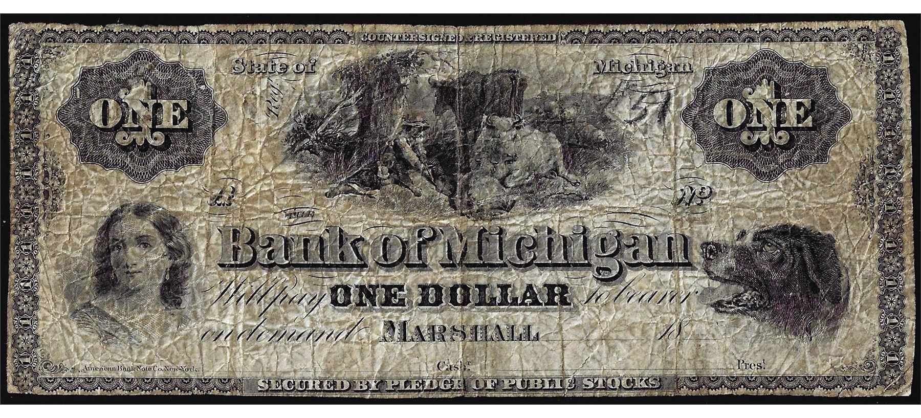 1800's $1 The Bank of Michigan Marshall, MI Obsolete Note
