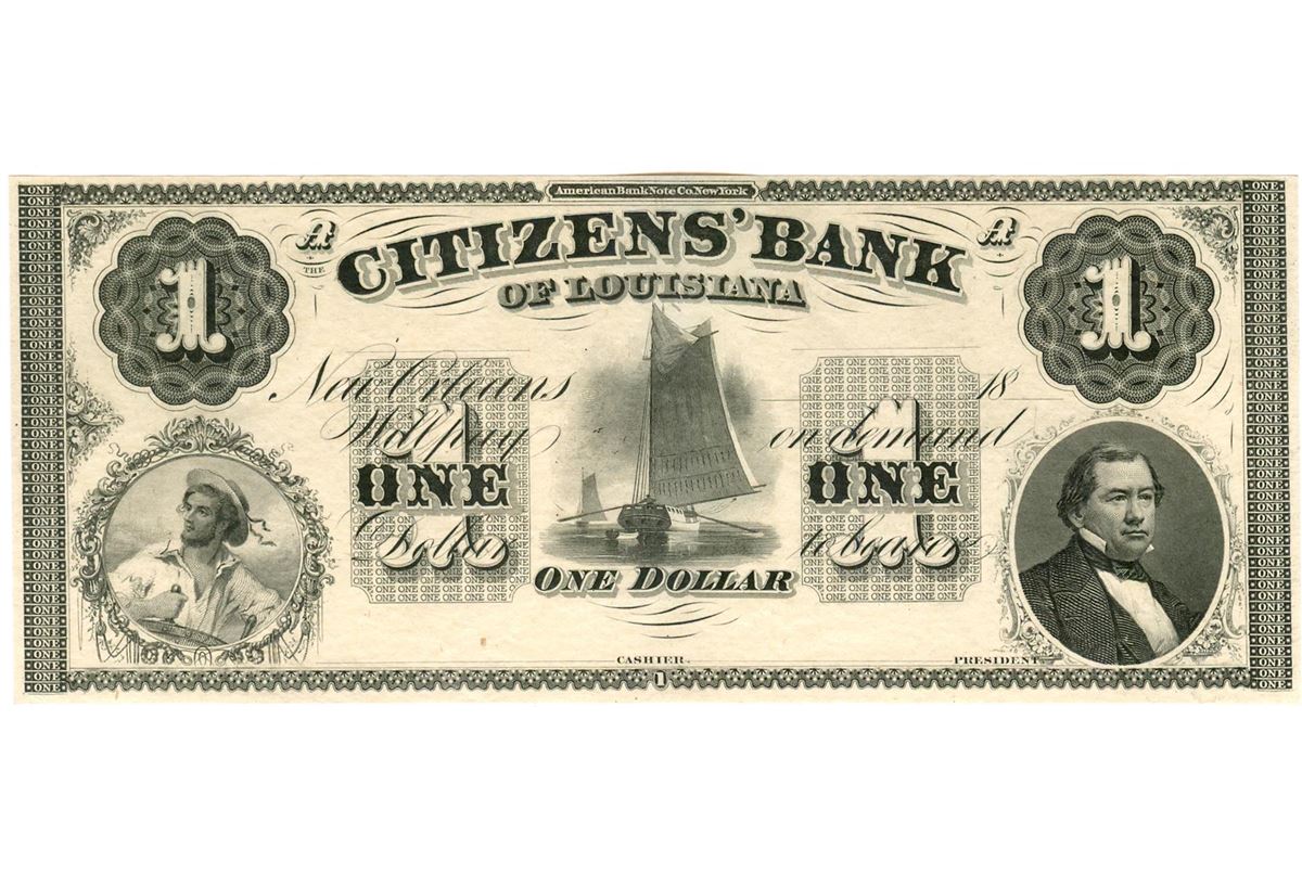 One 1800's $1 The Citizens Bank of Louisiana Bank Note.