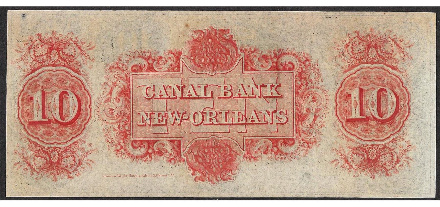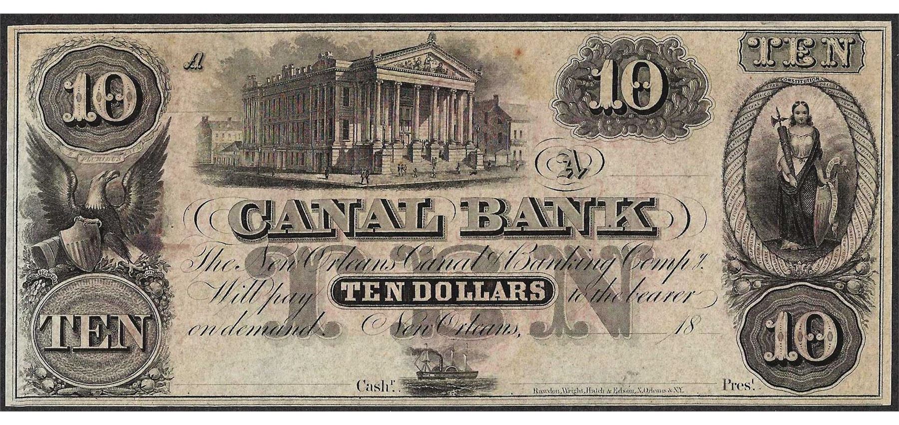 One 1800's $10 Canal Bank New Orleans Obsolete Note.