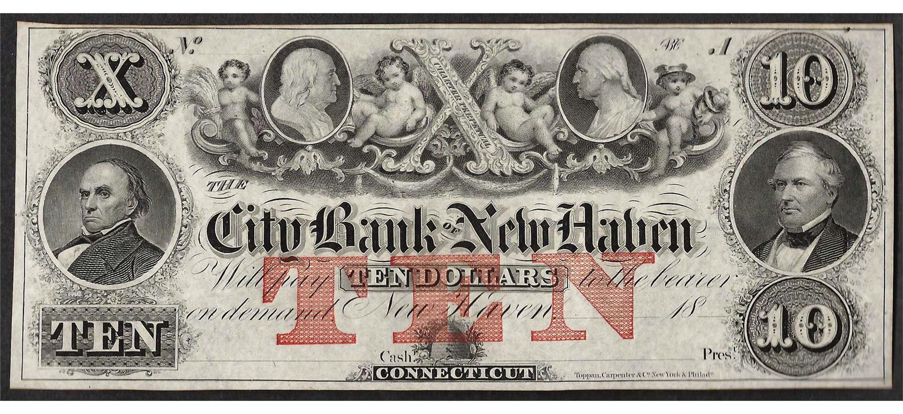 One 1800's $10 The City Bank of New Haven Obsolete Note.
