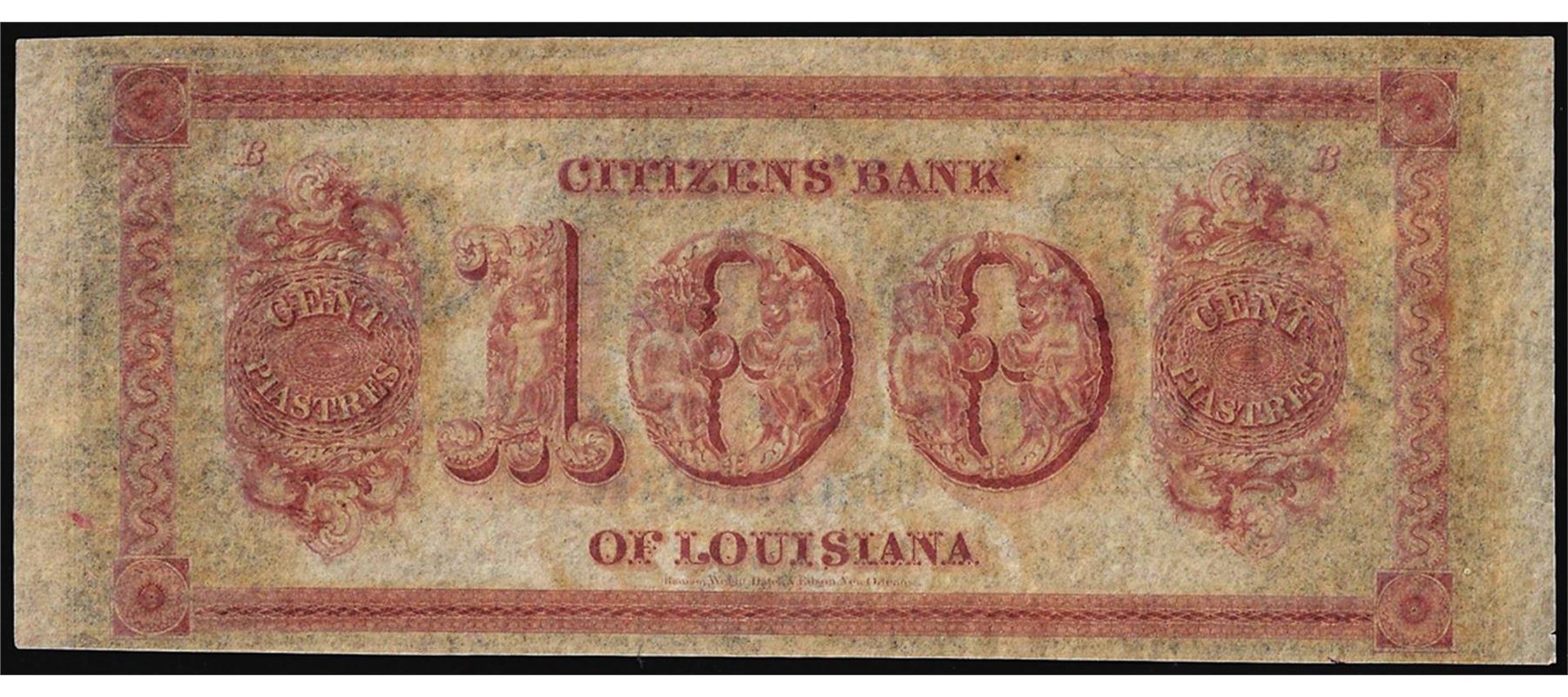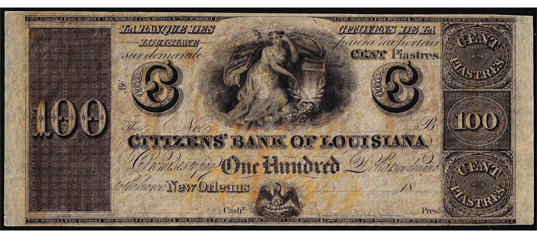 One 1800's $100 Citizens Bank of Louisiana Obsolete Bank Note.