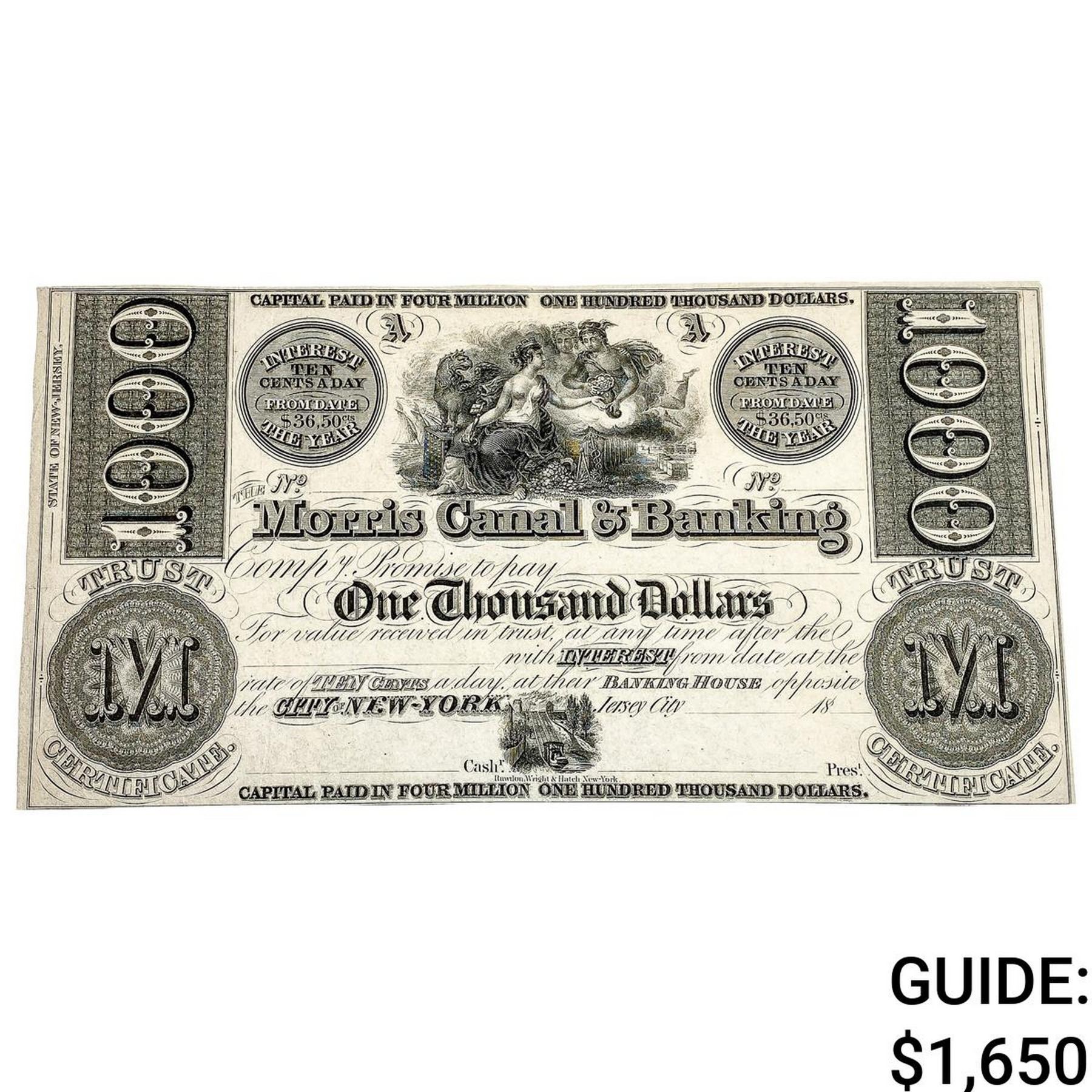 1800's $1000 Morris Canal&Banking Trust Certif.-NJ