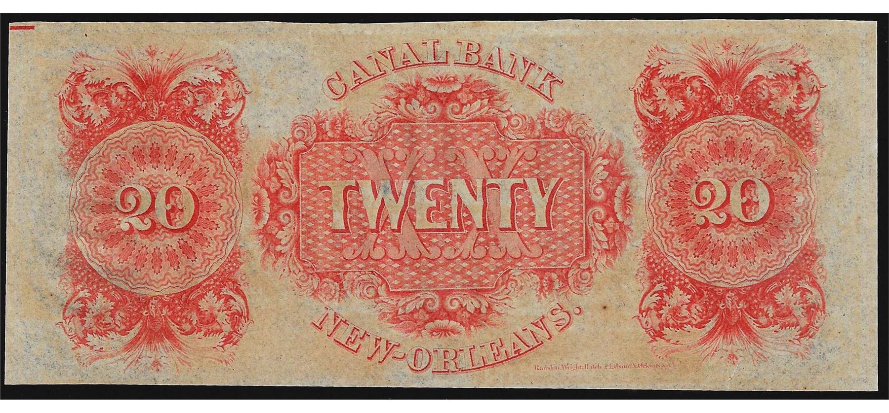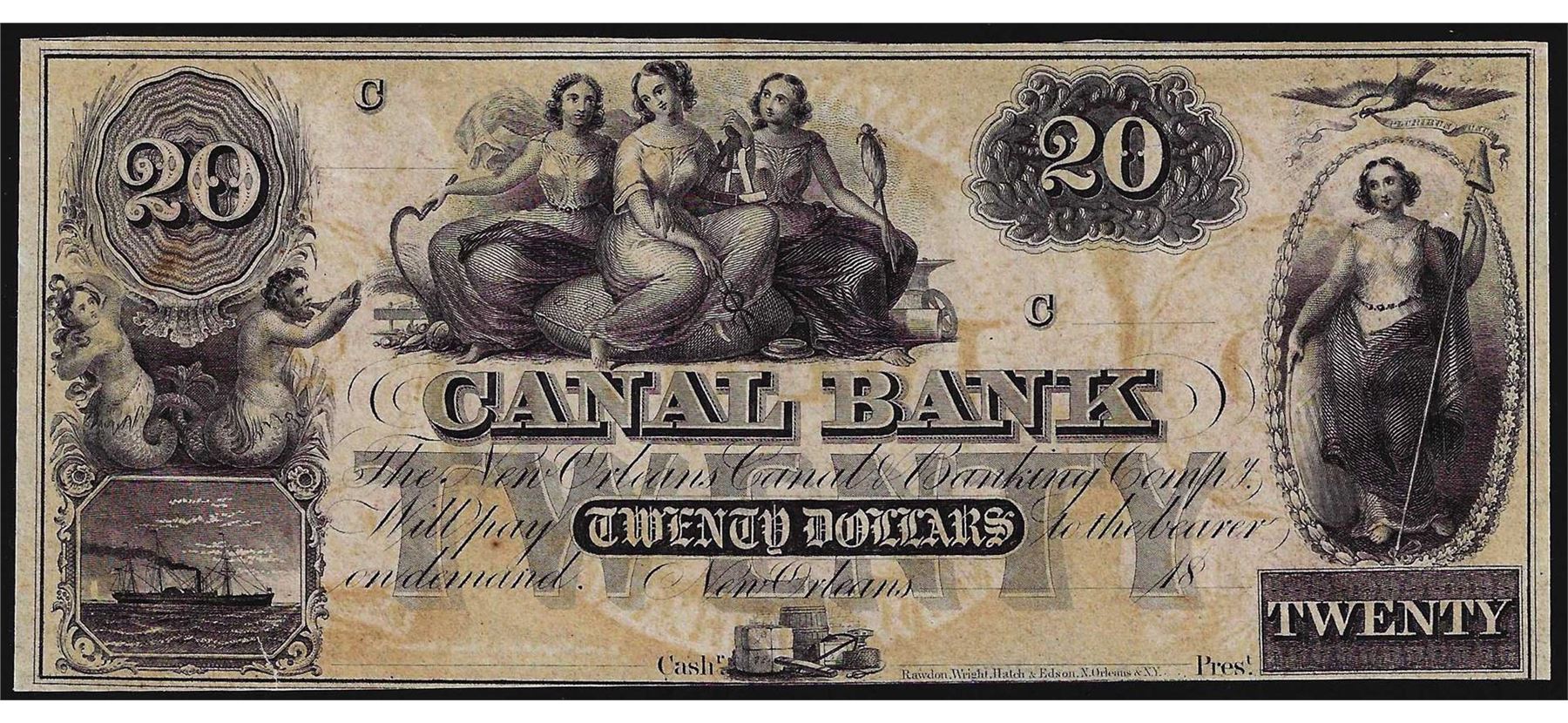 One 1800's $20 Canal Bank New Orleans Obsolete Bank Note.