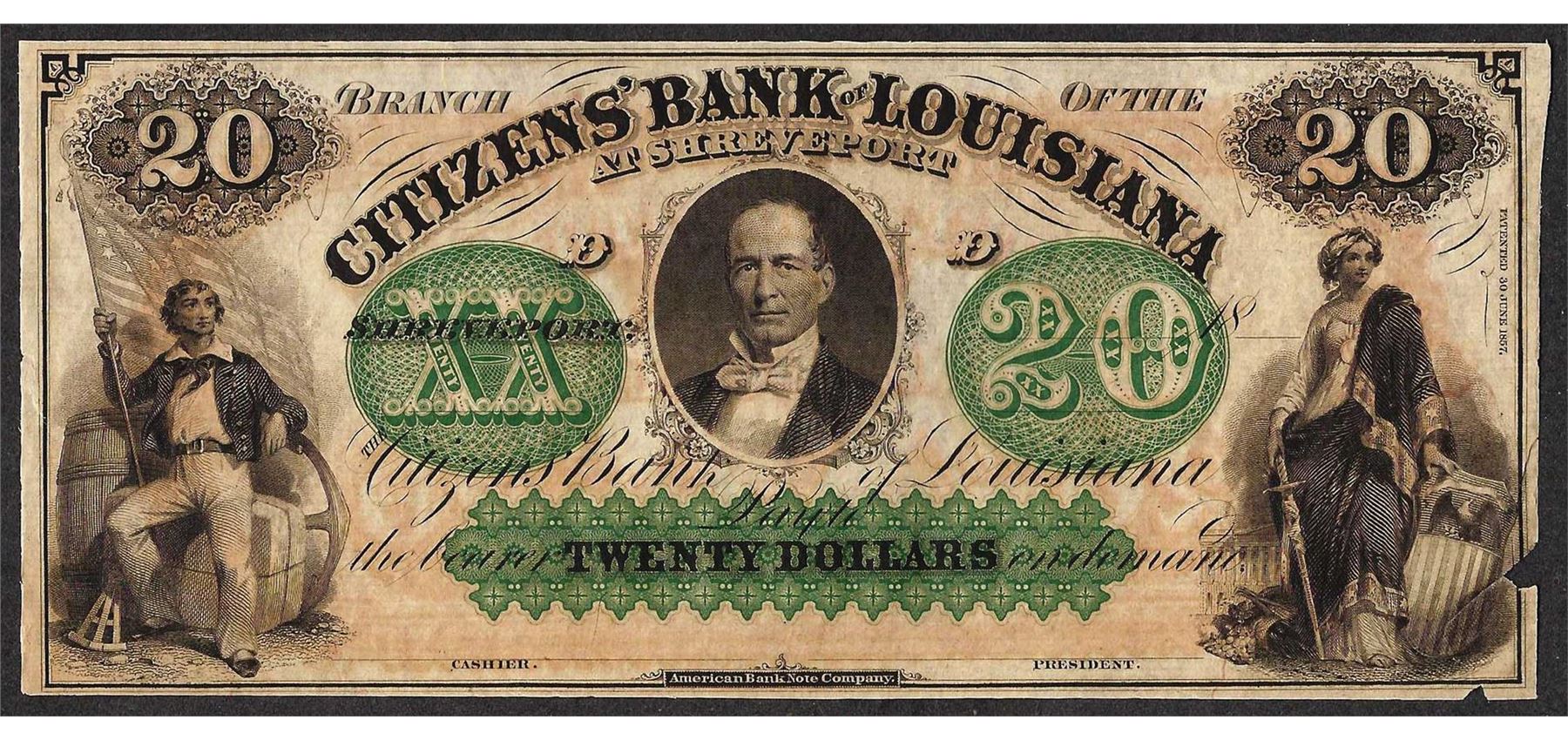 One 1800's $20 Citizens Bank of Louisiana Obsolete Note.