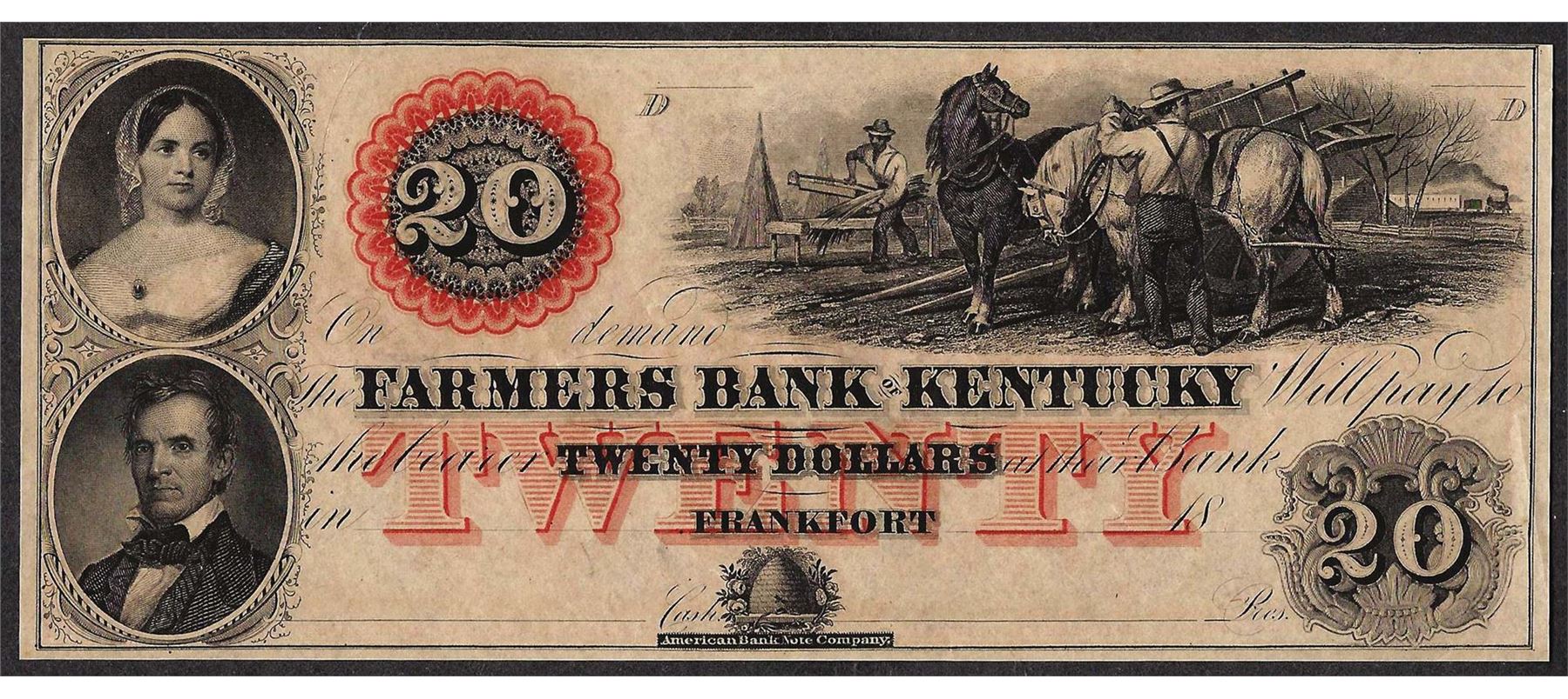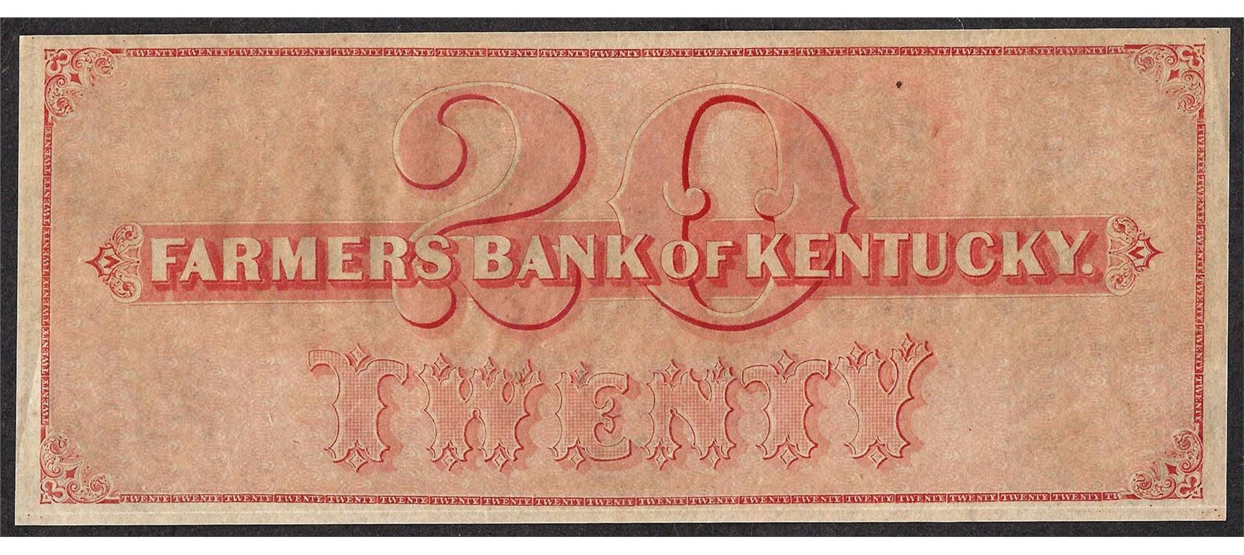 One 1800's $20 The Farmers Bank of Kentucky Obsolete Note.