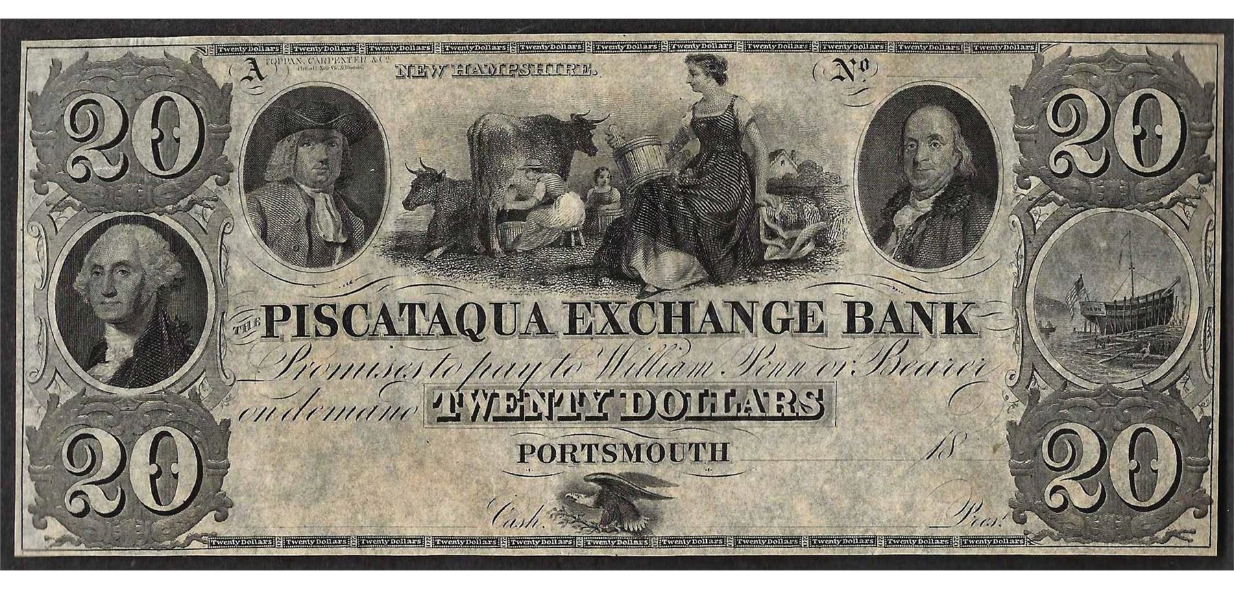One 1800's $20 The Piscataqua Exchange Bank Obsolete Note.