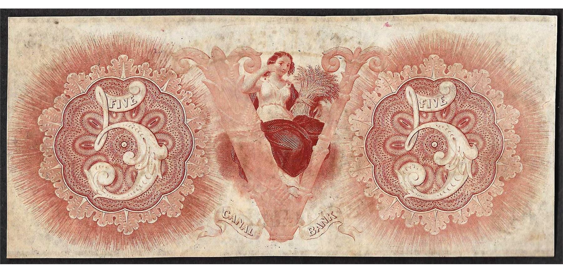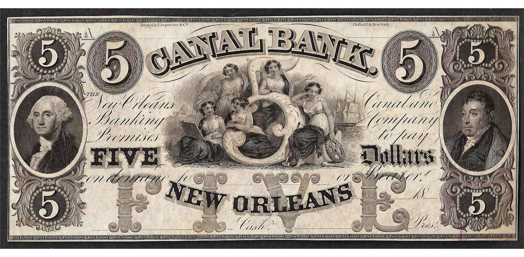 One 1800's $5 Canal Bank New Orleans Obsolete Note.