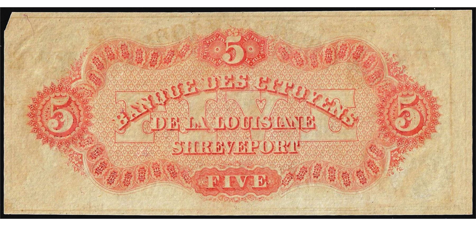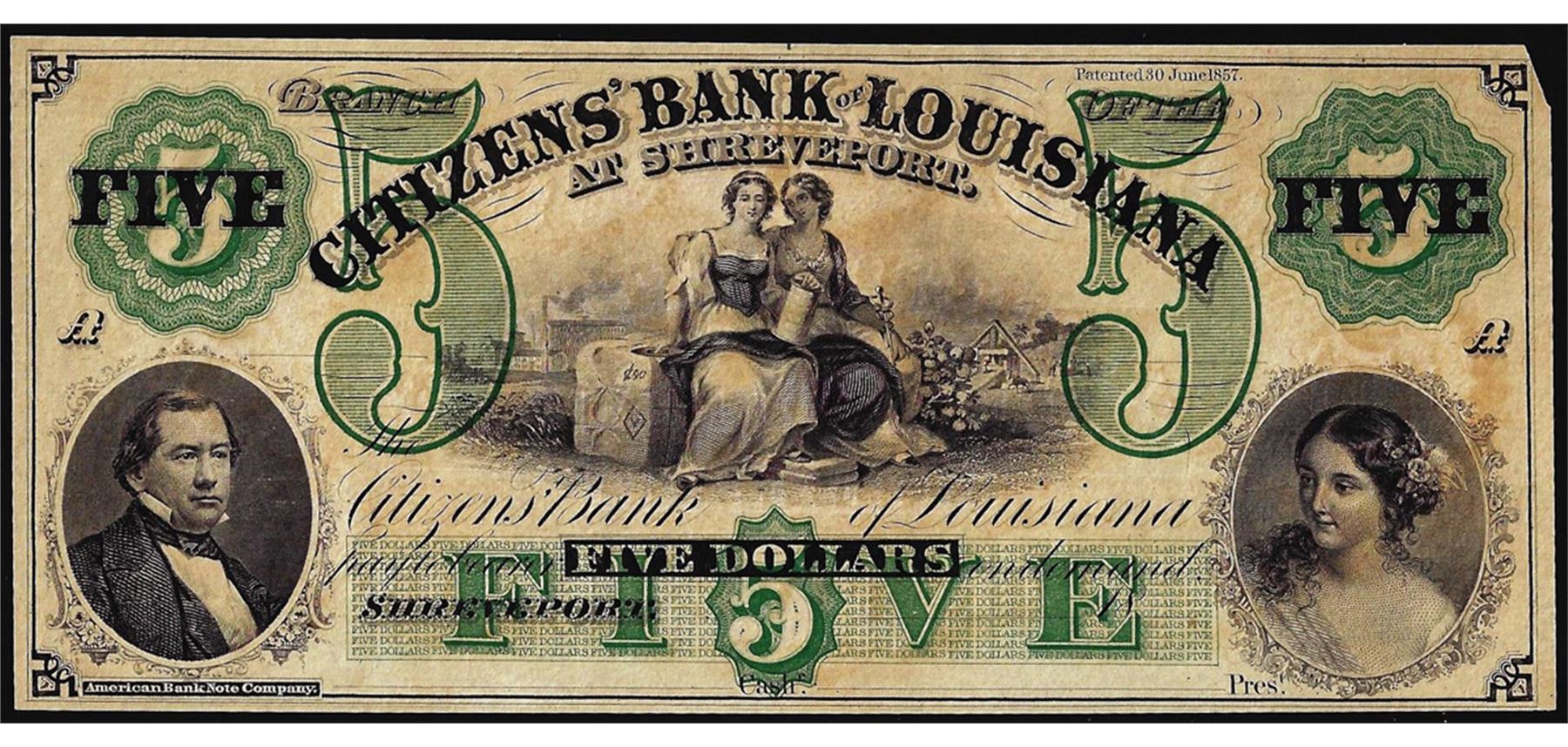One 1800's $5 Citizens Bank of Louisiana Obsolete Bank Note.