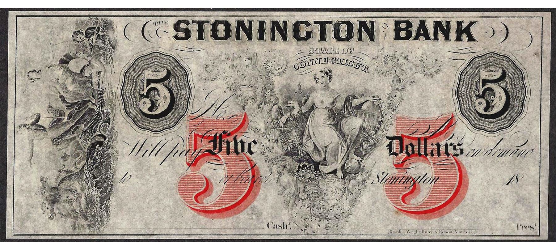 One 1800's $5 The Stonington Bank Obsolete Note.