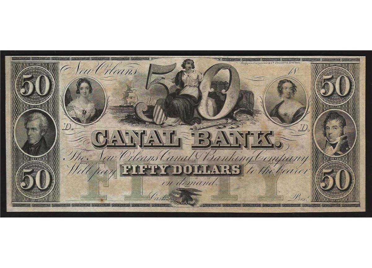 One 1800's $50 Canal Bank of New Orleans Obsolete Bank Note.