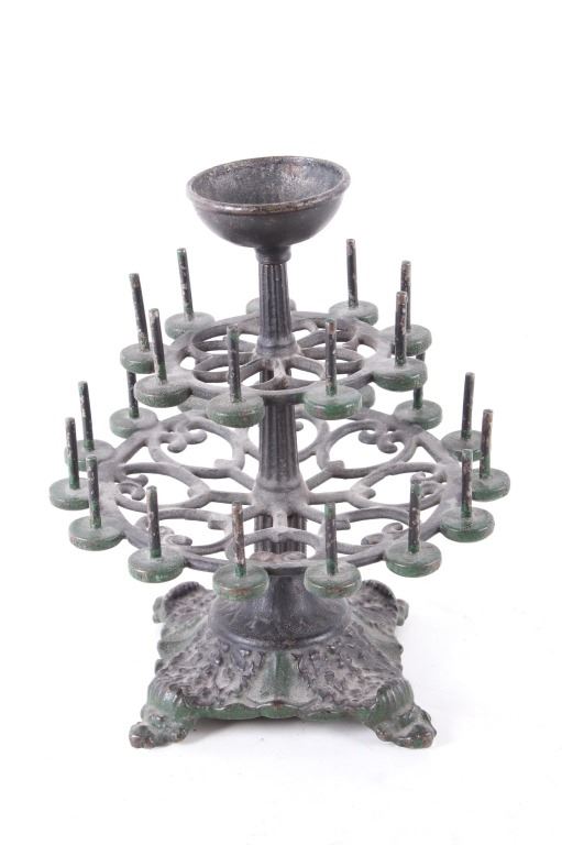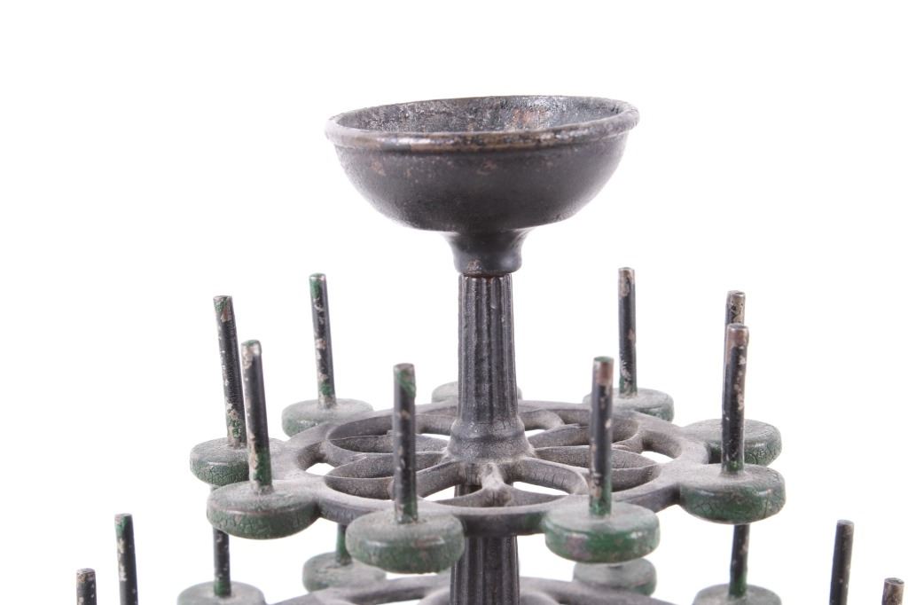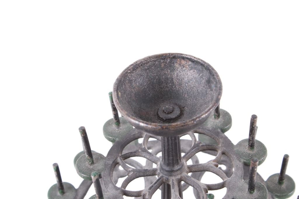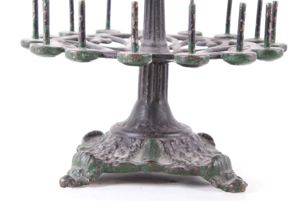 For your bidding pleasure is this 1800's Cast Iron Painted Thread Spool Tree. This free form spool rows individually spin showing very practical construction. This is a very artistic and a great item for any seamstress. The measurements of this piece are 7 3/4" x 6 1/2"