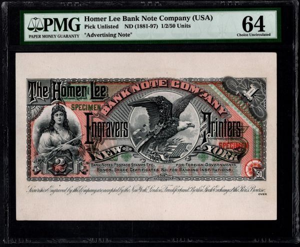 One 1800's Homer Lee Bank Note Company Advertising Card PMG 64.