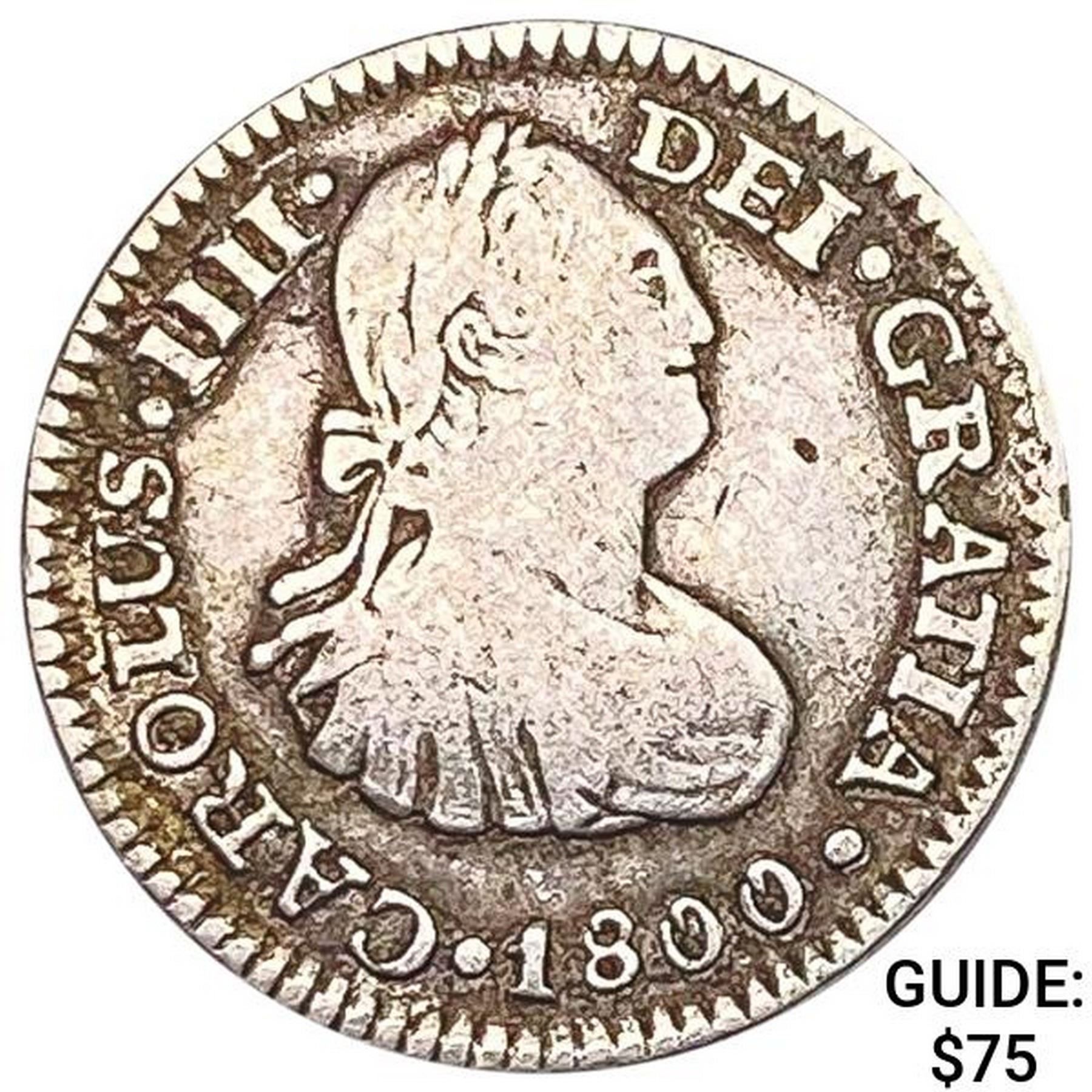 1800Mo FM Mexico Silver 1/2 Reales ABOUT UNCIRCULATED