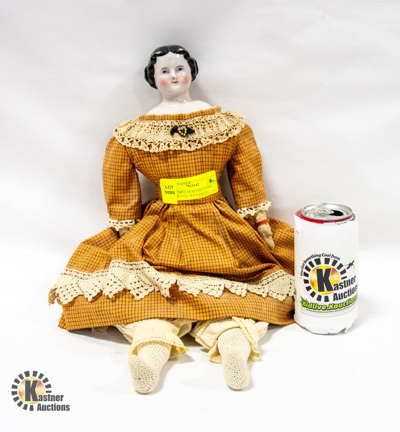 1800S CHINA HEAD SHOULDER MOULD DOLL WITH DRESS