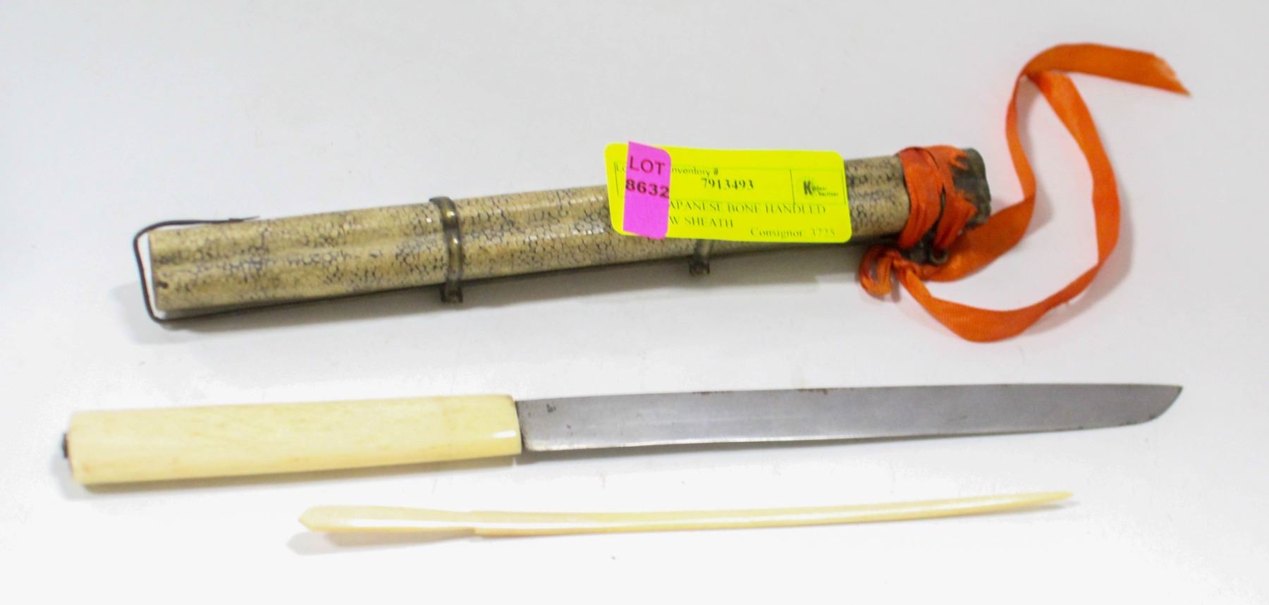 1800S JAPANESE BONE HANDLED KNIFE W SHEATH