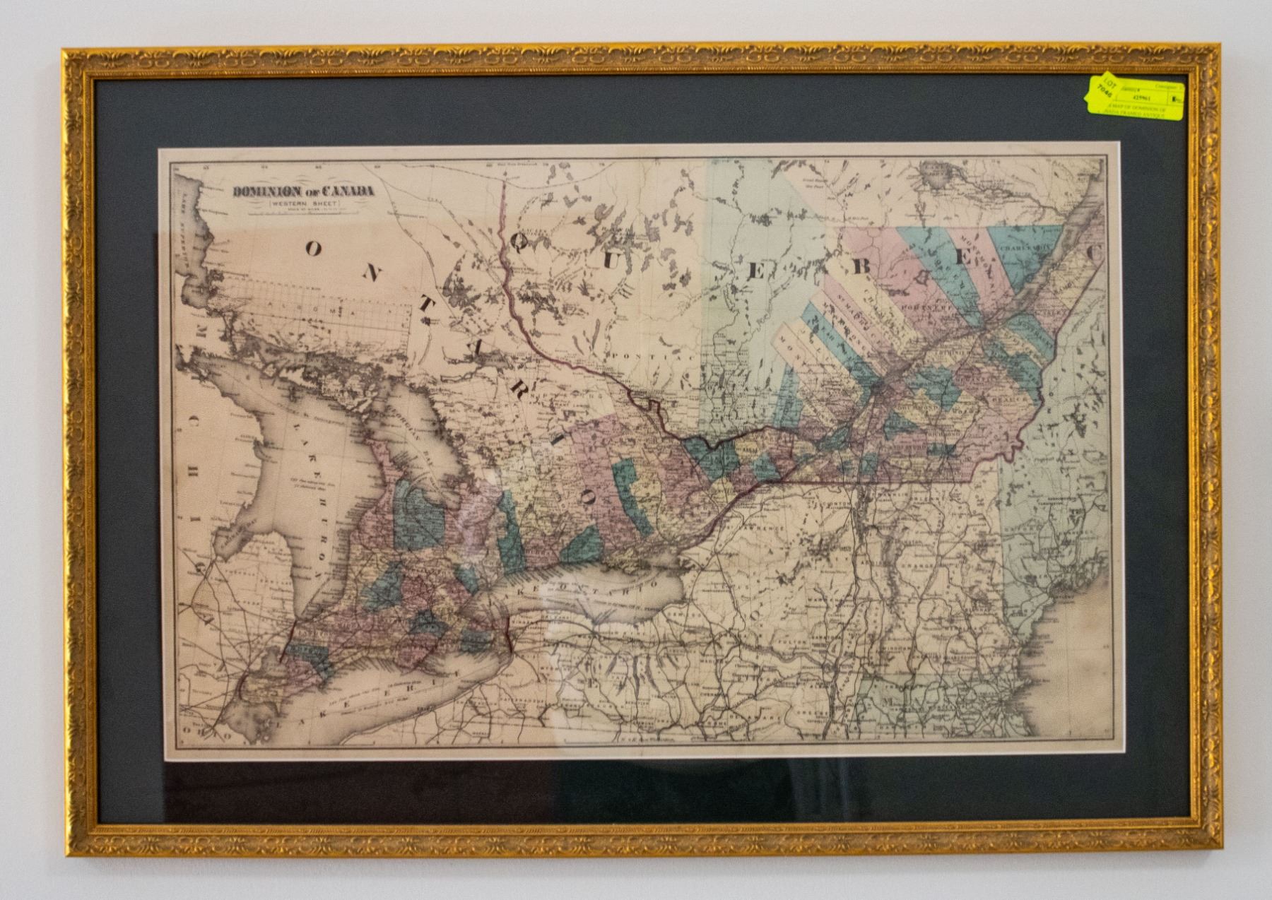 1800S MAP OF DOMINION OF CANADA FRAMED ANTIQUE