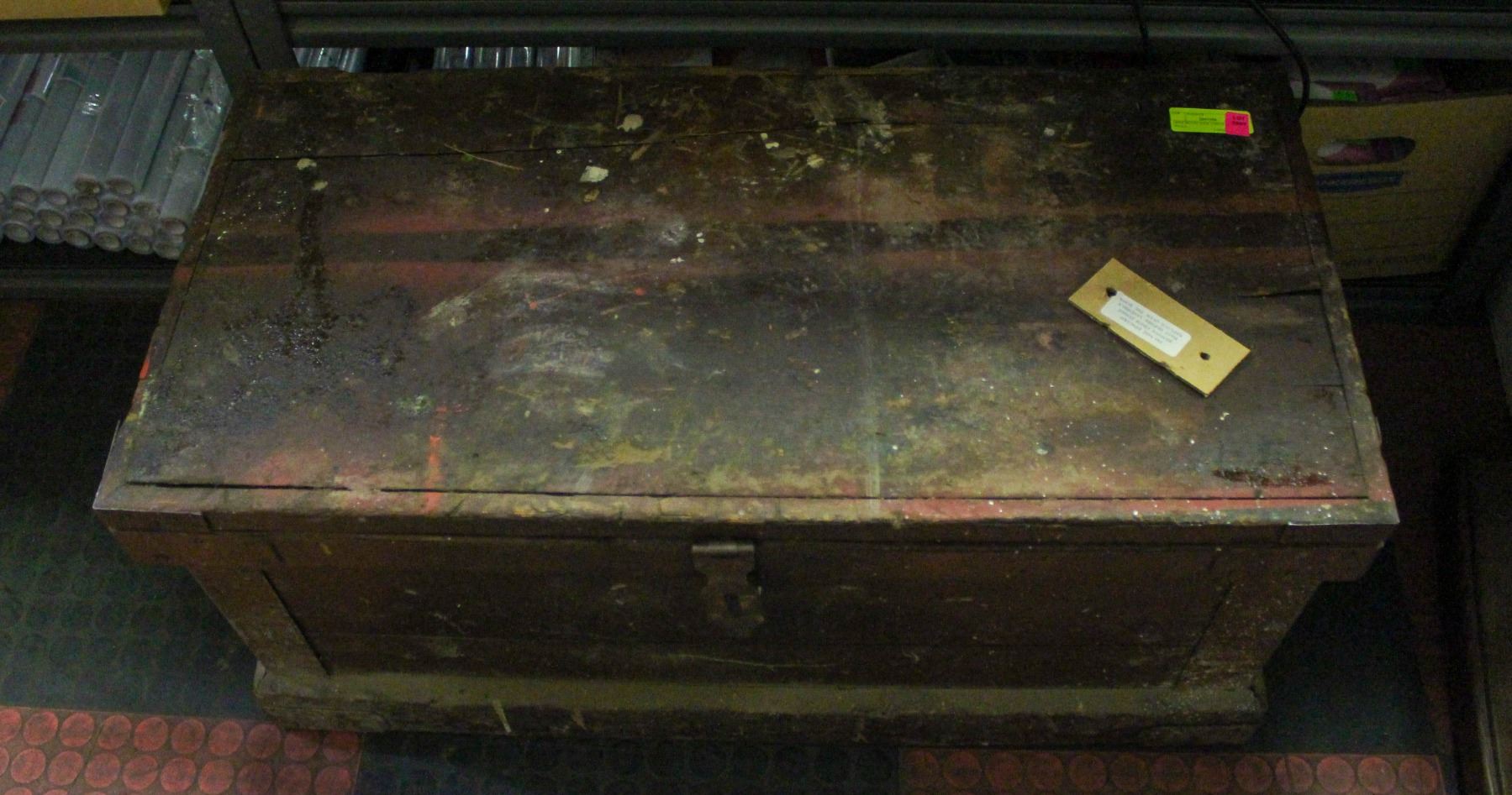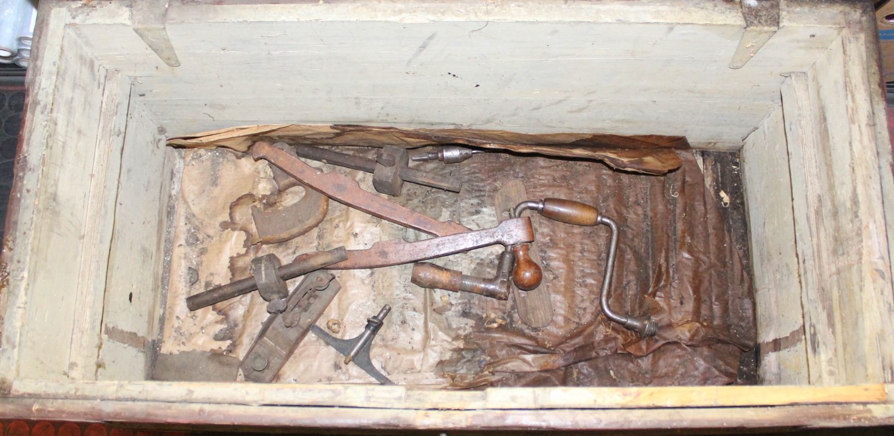 1800S WOOD TOOL CHEST W SOME TOOLS