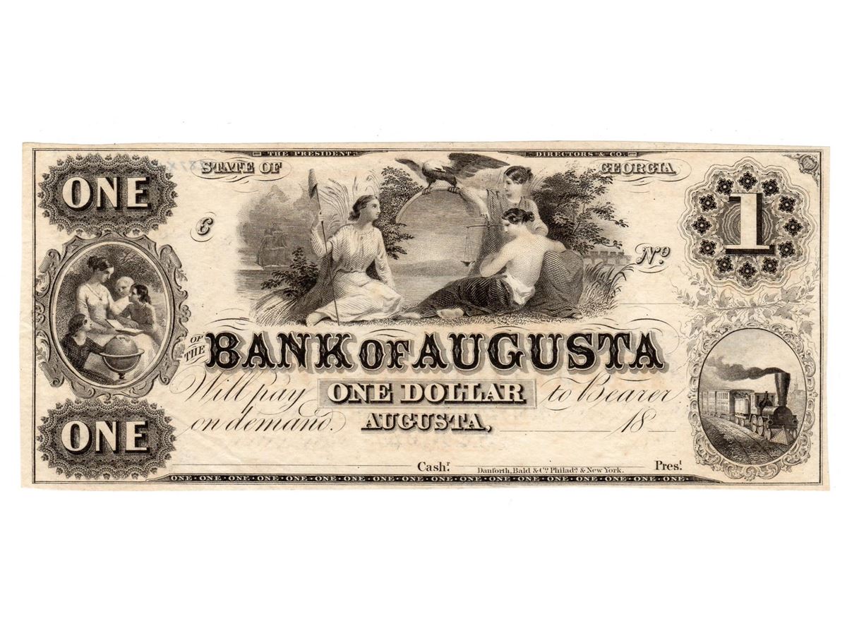 One 1800s $1 Bank of Augusta Georgia Obsolete Bank Note.