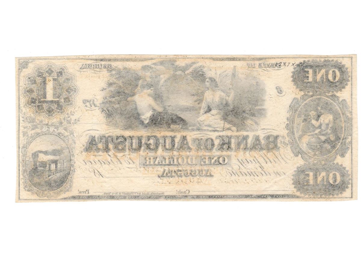 One 1800s $1 Bank of Augusta Georgia Obsolete Bank Note.