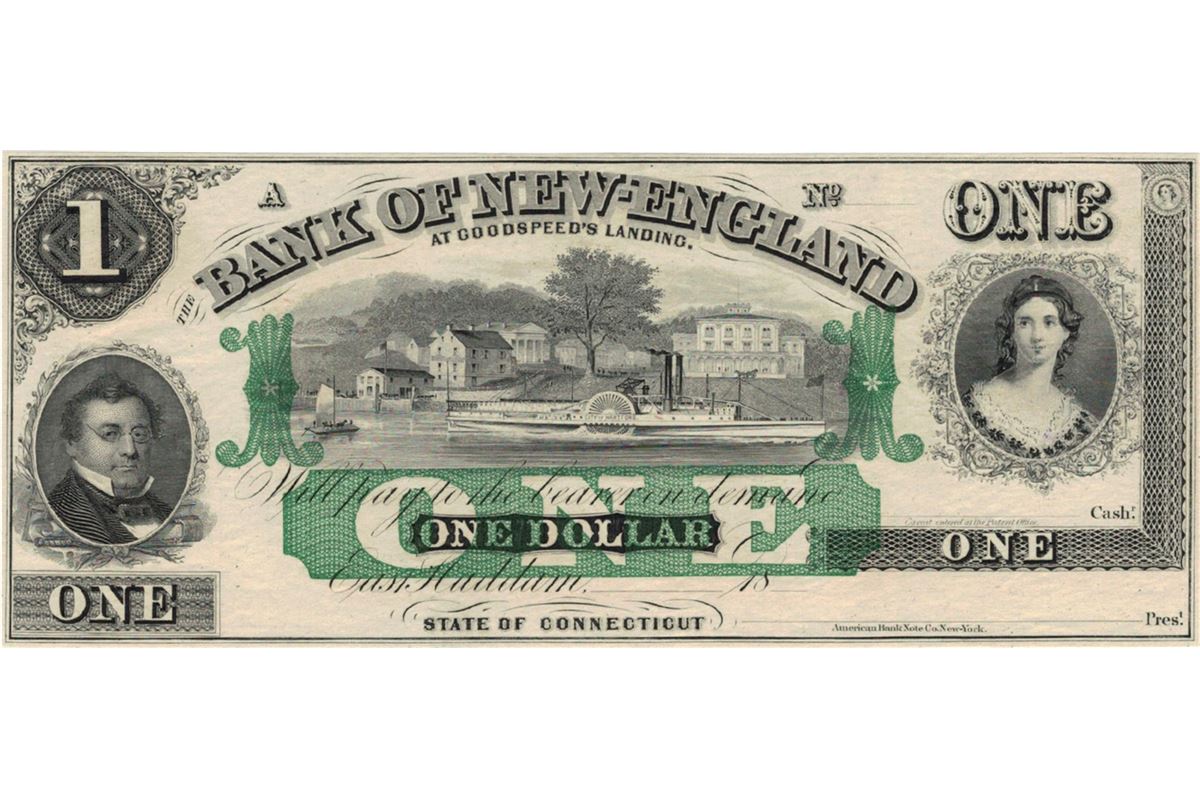 One 1800s $1 Bank of New England Goodspeed's Landing CT Obsolete Currency Note.
