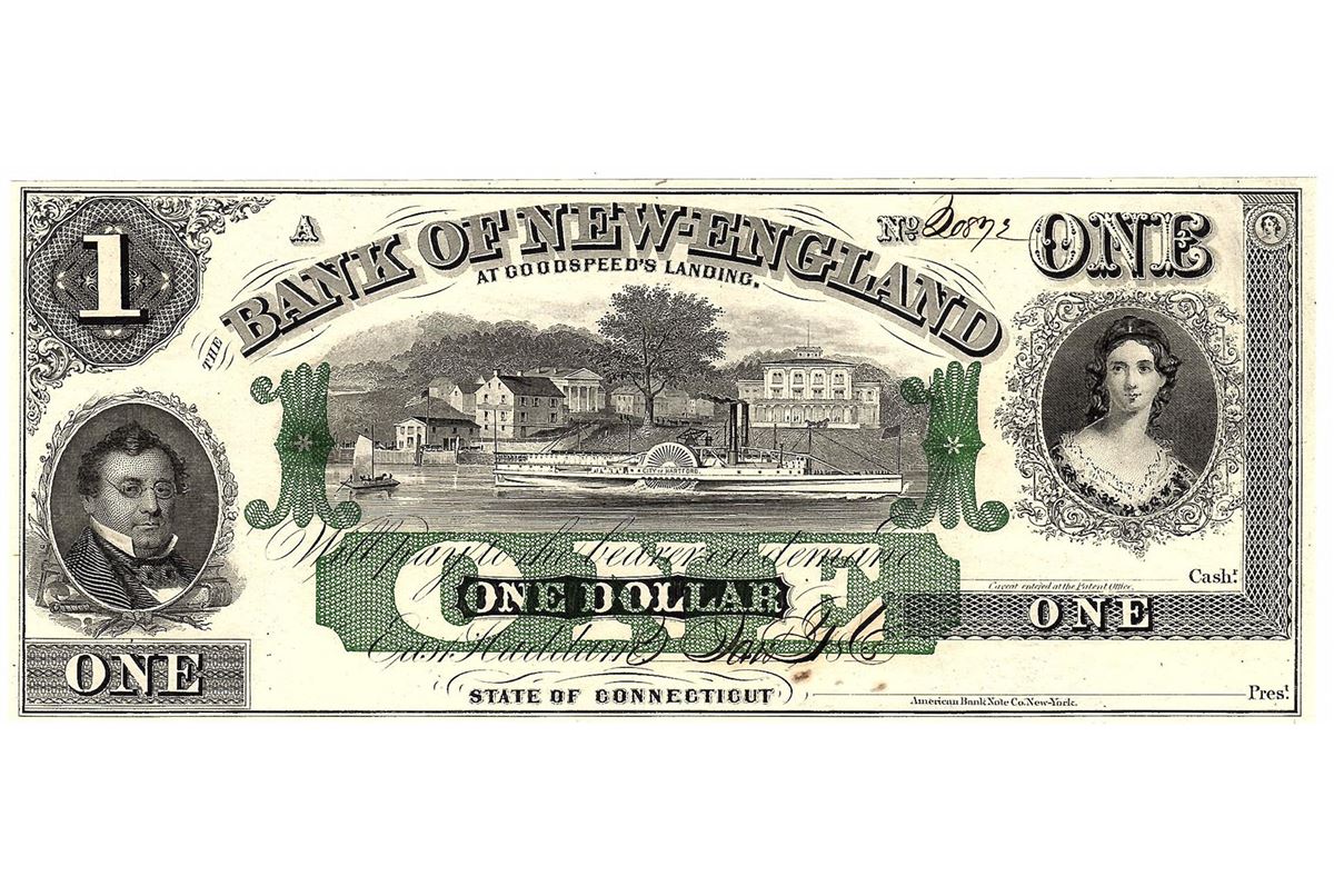 One 1800's $1 Bank of New England Obsolete Currency Note.