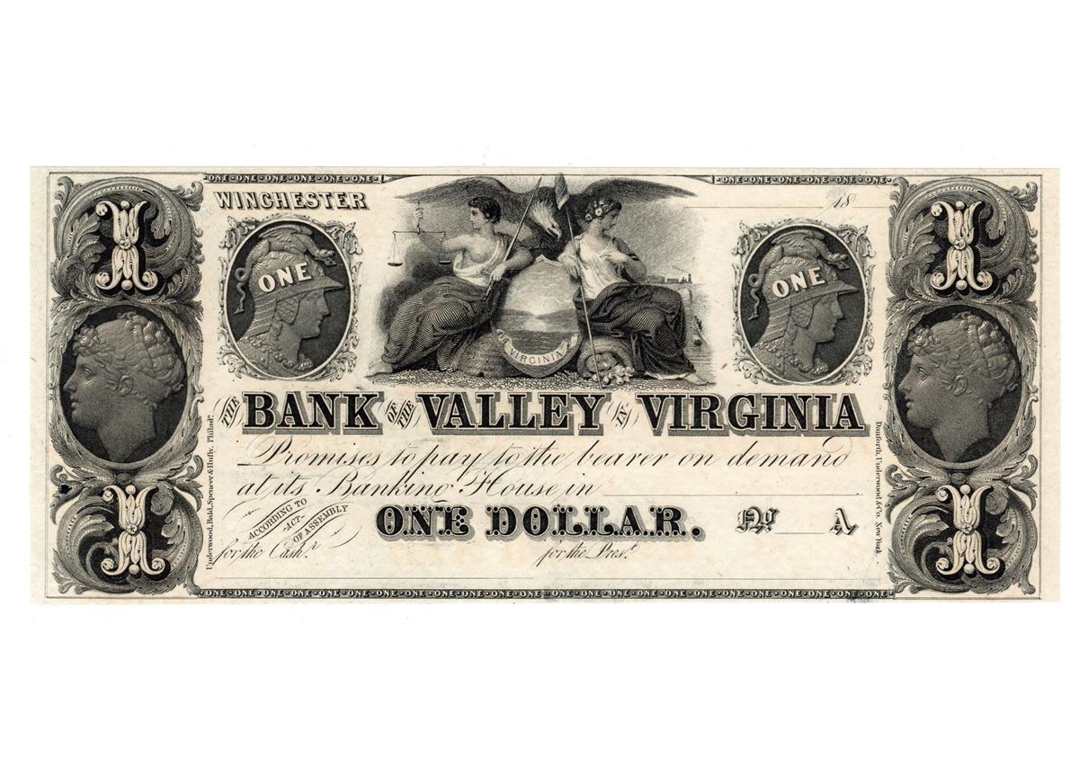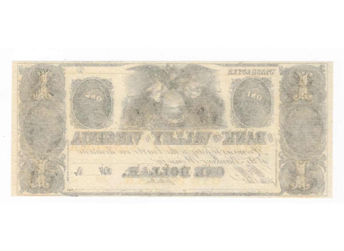 One 1800s $1 Bank of the Valley in Virginia Obsolete Note.